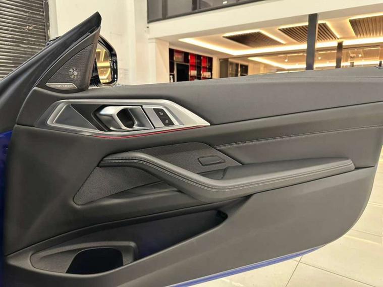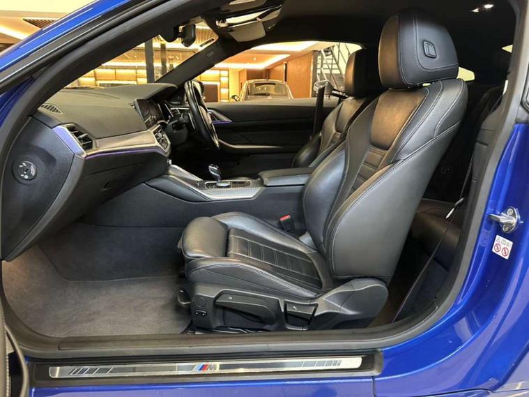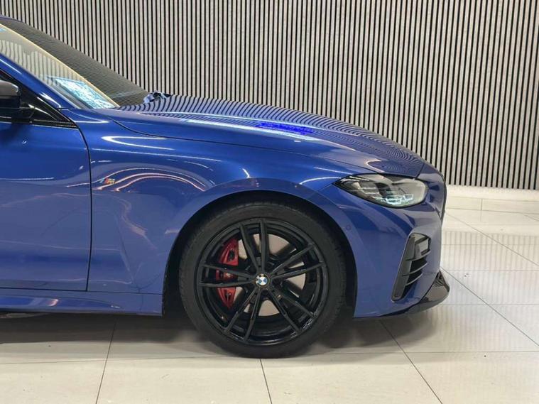 Finished in the striking Portimao Blue, this Bmw 4 Series exudes sophistication and style. The 19-inch Alloy Wheels in Double Spoke Style - 791 M - Jet Black with Mixed Tyres add a touch of sportiness, while the BMW Individual High-Gloss Shadowline with Extended Contents and BMW Individual Lights - Shadowline enhance its sleek and dynamic appearance.