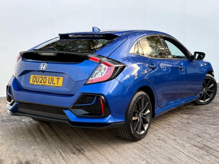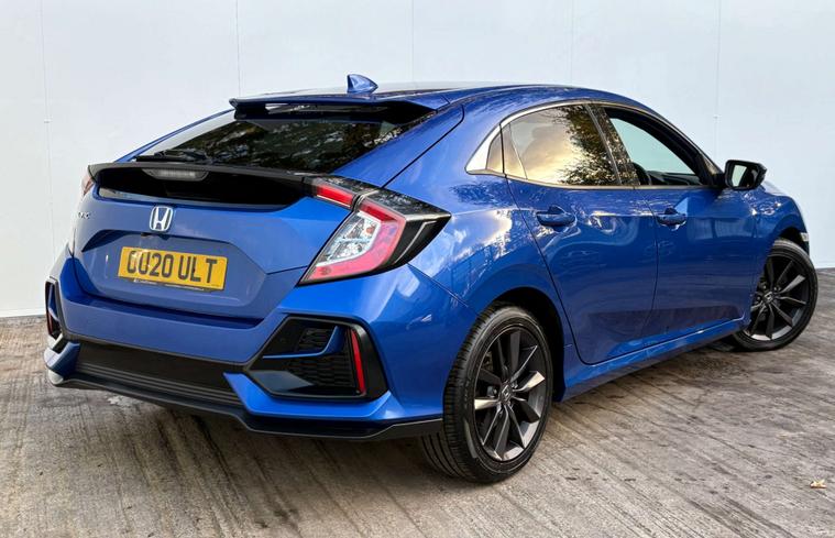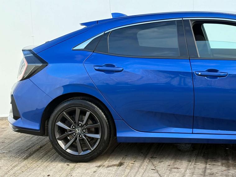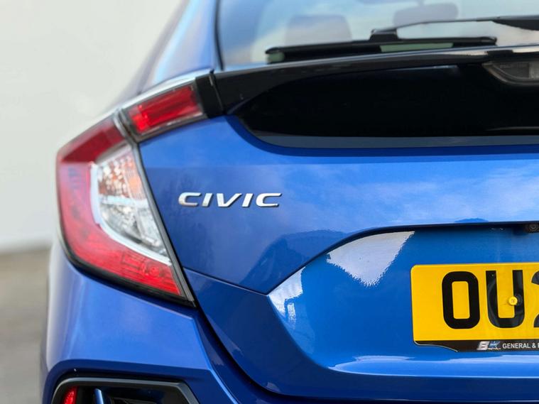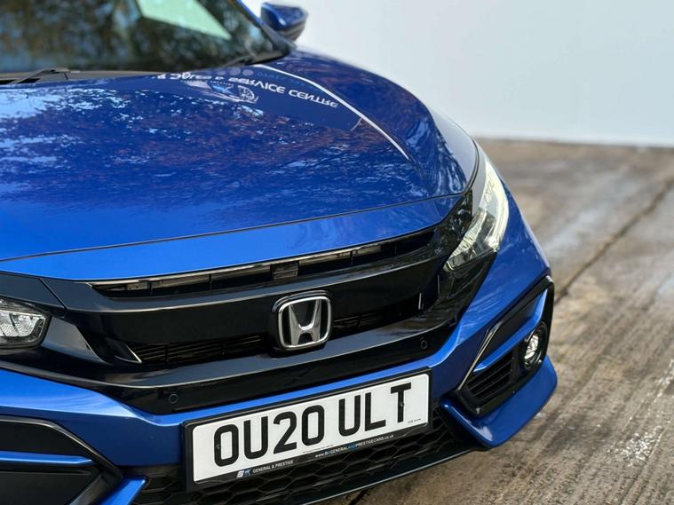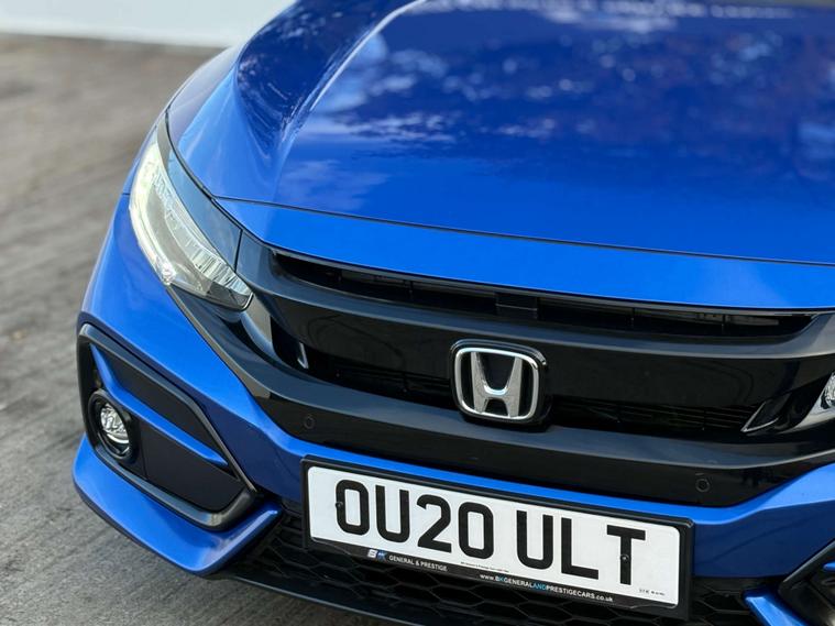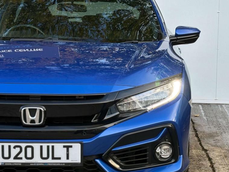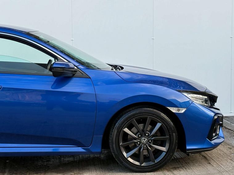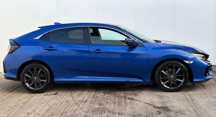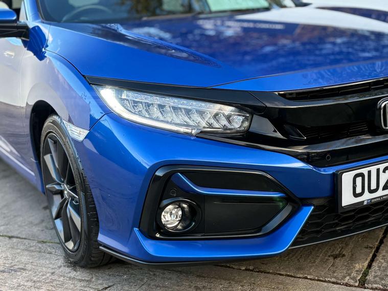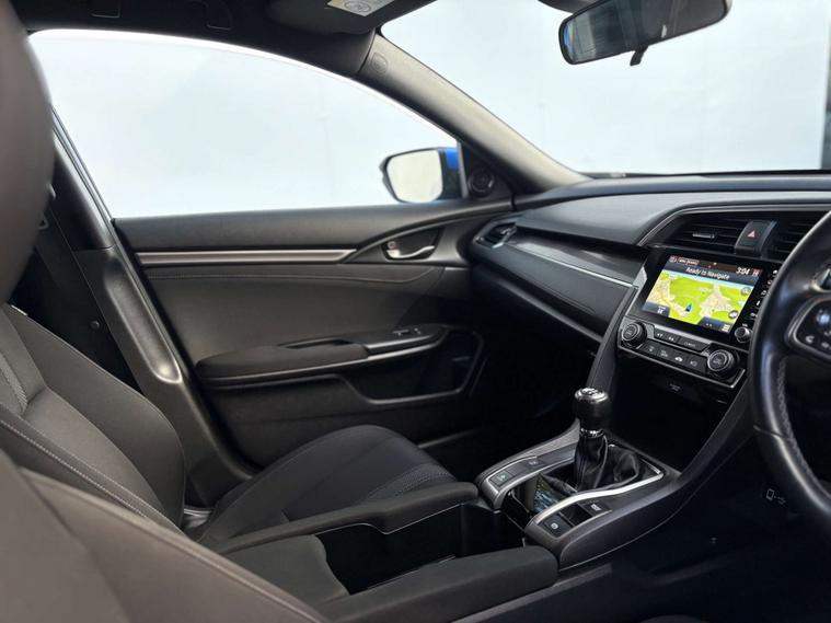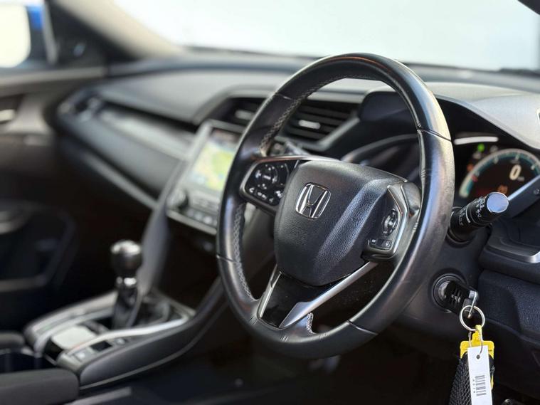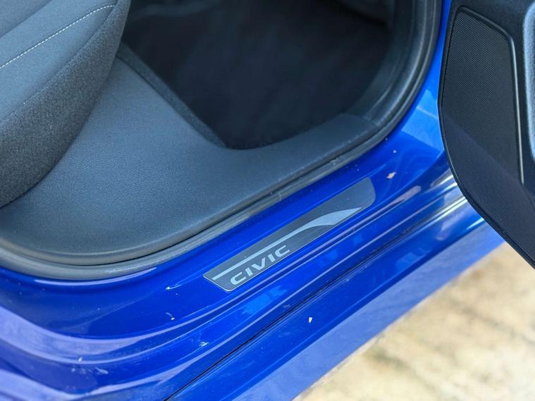 Finished in a striking Brilliant Sporty Blue, the Honda Civic is sure to turn heads wherever you go. Its sleek design and aerodynamic lines not only enhance its visual appeal but also contribute to its impressive fuel efficiency. Step inside, and you'll be greeted by a sophisticated interior featuring premium Fabric in Black, providing both comfort and durability for every journey.
