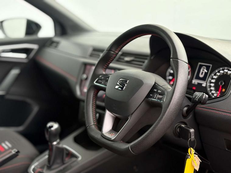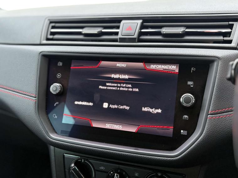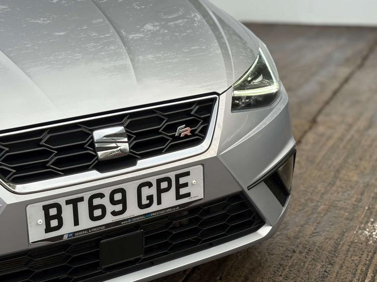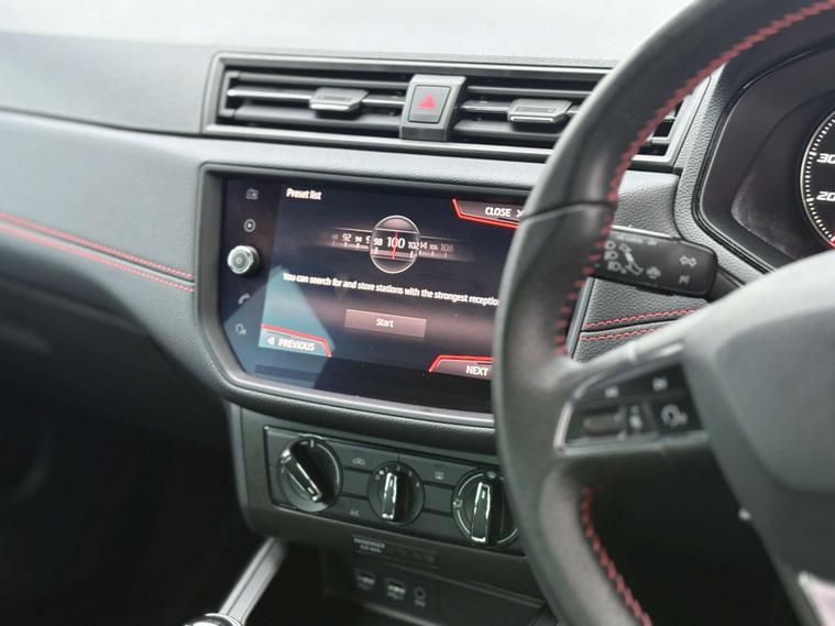 With only two previous owners, this Seat Ibiza has been meticulously maintained and is in pristine condition, offering you the peace of mind that comes with a nearly-new car. The FR Cloth interior in Nora Black adds a touch of elegance and sportiness, ensuring that every journey is as comfortable as it is enjoyable.