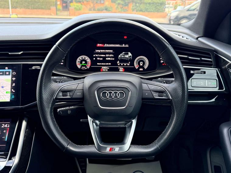This particular model comes with an array of premium extras that elevate it to the pinnacle of luxury. Revel in the peace of mind that comes with a Full Audi Service History, ensuring your investment is well-maintained and ready for the journey ahead. The striking 22-inch Alloy Wheels with a 5-V-Spoke Star Design in Gloss Anthracite Black add a touch of sportiness and flair, perfectly complementing the Body Coloured Door Mirrors.