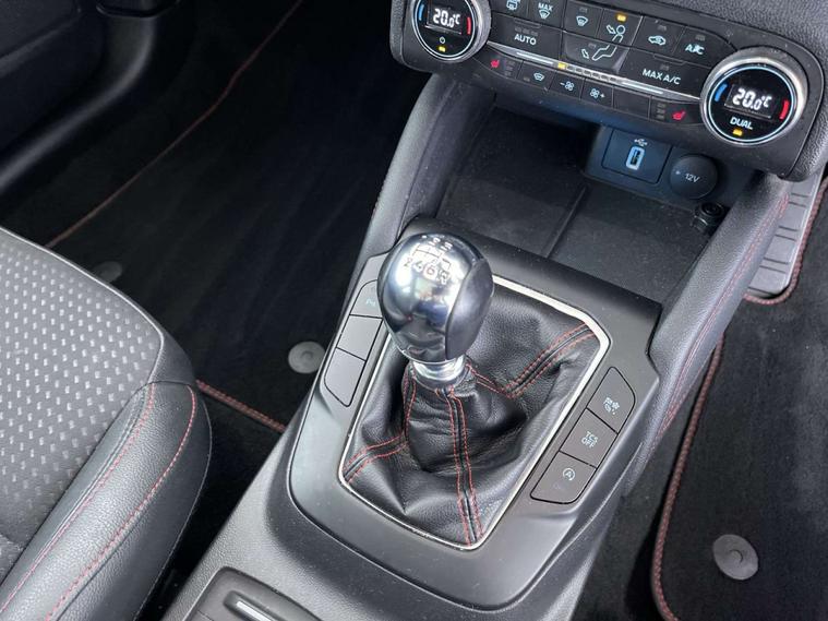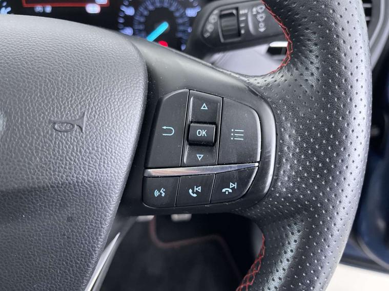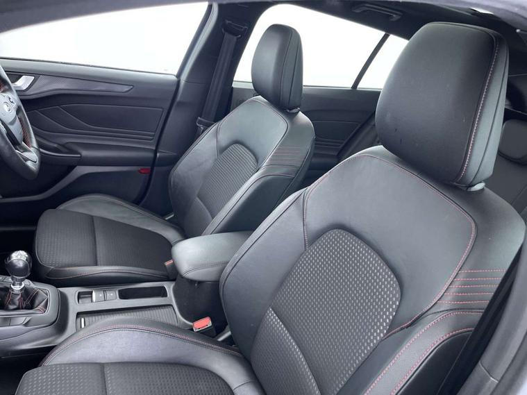 Finished in a sleek Chrome Blue, this Focus combines sporty design with premium comfort. Inside, you’ll find Foundry Partial Leather and Salerno Leather seats with Vinyl Bolsters in Ebony and eye-catching Red Stitching, creating a refined and dynamic interior.