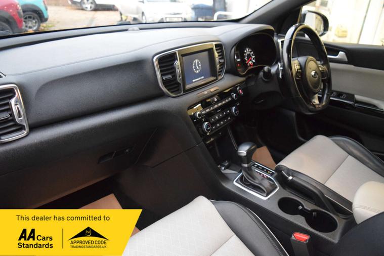 A super example of the Kia Sportage GT Line Auto. Excellent condition inside and out. Just one previous owner from new with full Kia service history totalling 10 stamps in the book. the latest of which has recently been carried out. MOT until October 2026. DAB Radio, Sat Nav, Reverse Camera, heated leather seats and keyless start are some of the options this car has. Drive away today. All cars and vans come complete with 12 Months AA Breakdown cover and 3 Months warranty as standard! Driveaway insurance options available on site too. Any vehicle in part exchange welcome. Looking for a performance upgrade and better fuel economy on your new car? Ask us about our remapping options starting from just £239. Extended Warranty available up to 3 years. Great rates of finance Available. Come visit us at our Colchester Showroom Today! We recommend contacting us before coming to view a vehicle just to confirm availability.