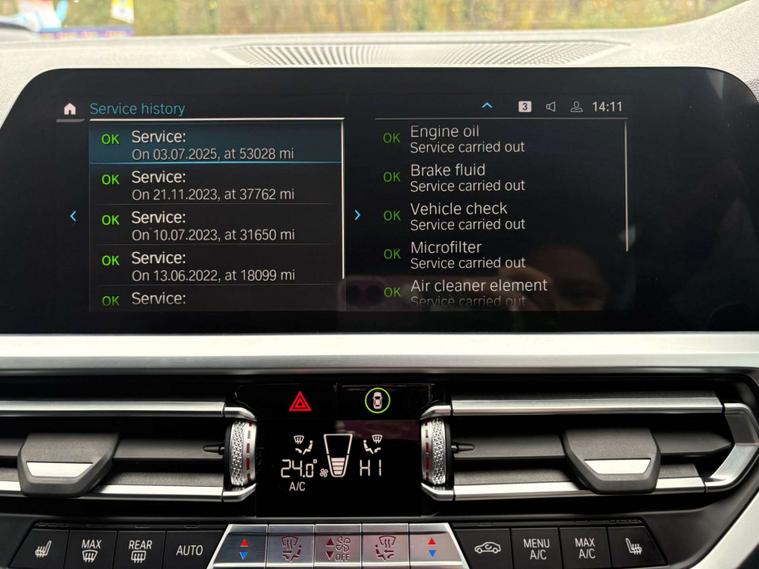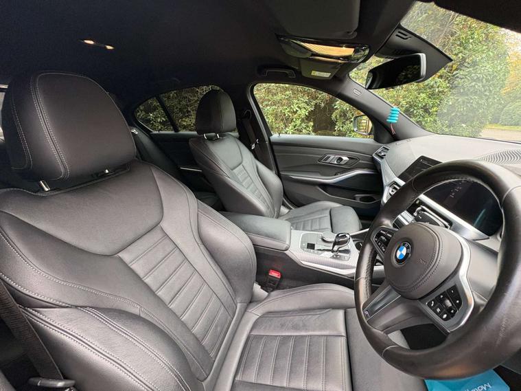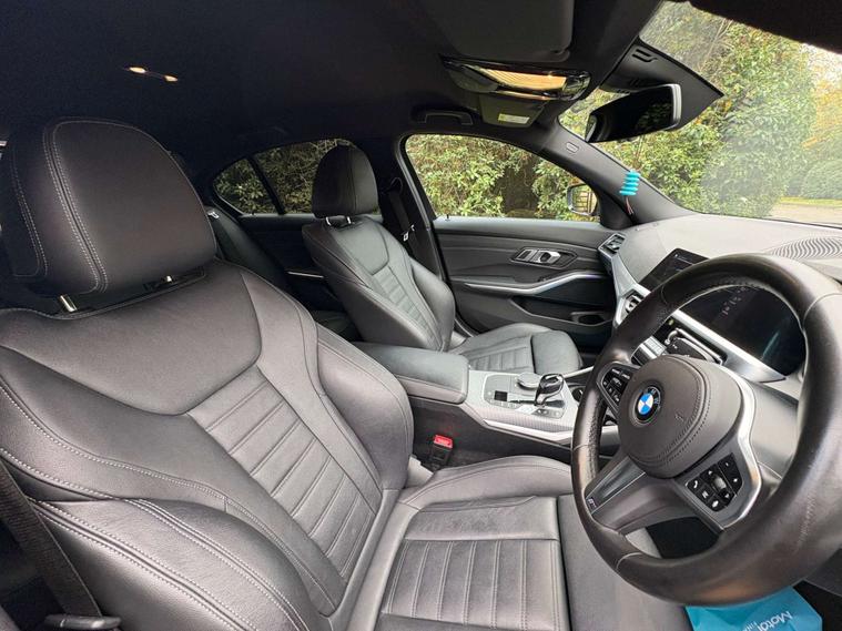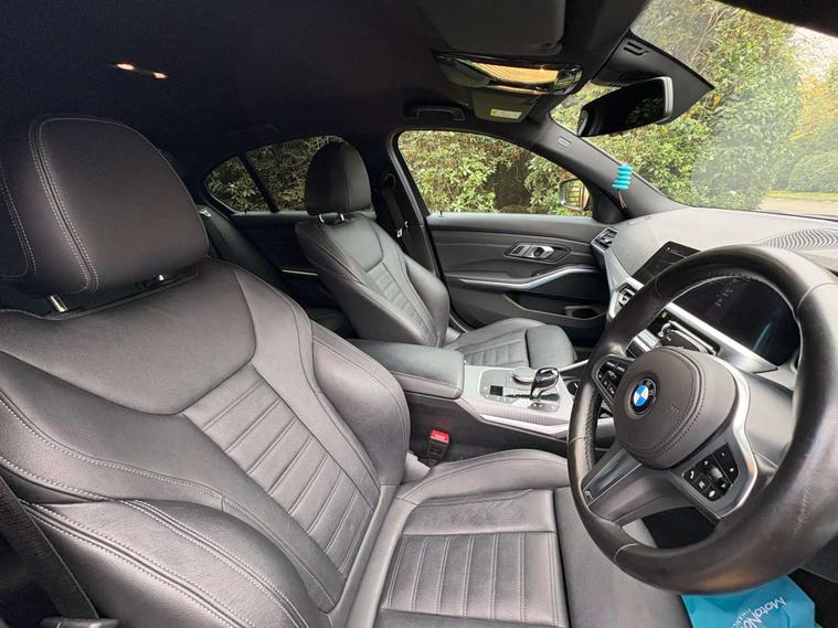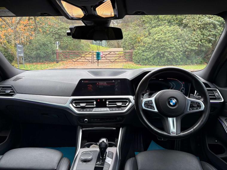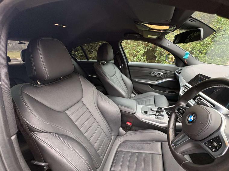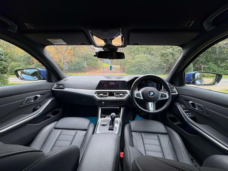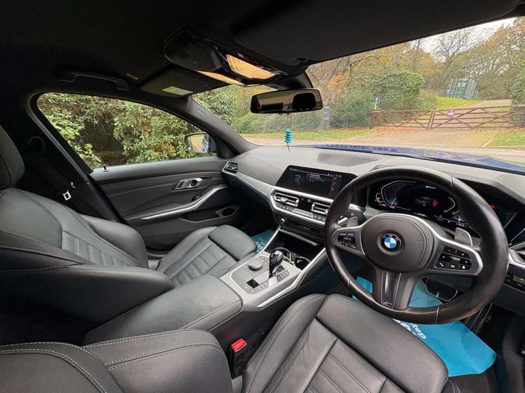 Finished in a sleek Portimao Blue, this BMW 3 Series is sure to turn heads wherever you go. The luxurious Vernasca Leather interior in Black with Grey Stitching adds a touch of elegance and sophistication to the driving experience.
