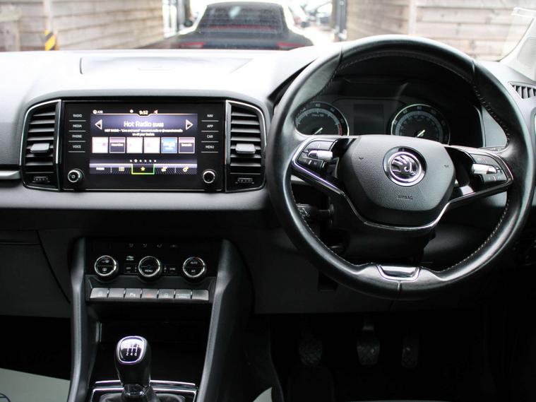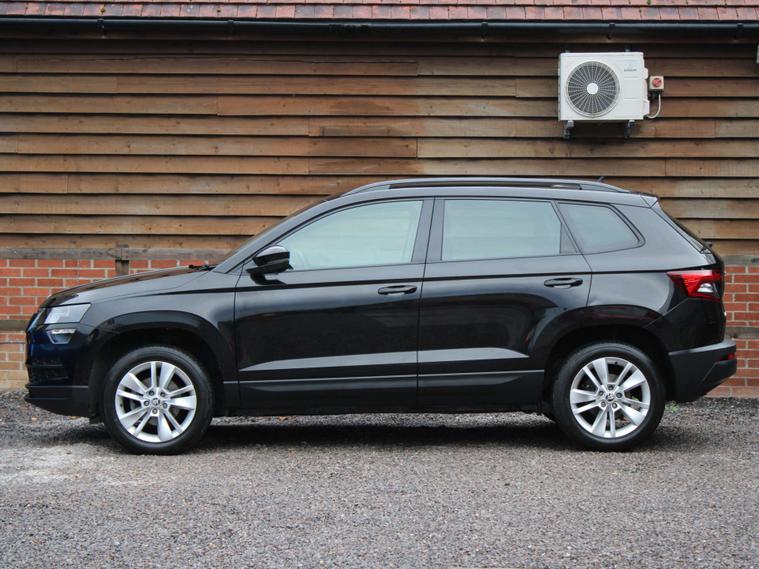 ***FOR VIEWINGS AND TEST DRIVES CALL US ON 01747692736 TO BOOK AN APPOINTMENT***One owner low mileage Karoq SE Tech fitted with Skoda's 1.5 litre turbo petrol ULEZ compliant engine producing impressive power of 150 BHP and great fuel economy finished in black metallic with equipment including touch screen media unit with sat nav, DAB radio and apple car play resulting in the ability to mirror the apps from your Iphone onto the car media screen including Google maps and Spotify, media connections, bluetooth, parking sensors, air conditioning, auto lights, cruise control, roof rails, alloy wheels and more, 1 owner, 30500 miles, service history, high up driving position with easy access in and out of the cockpit***PART EXCHANGE AVAILABLE***USE THE FINANCE CALCULATOR ON OUR WEBSITE dealer's website AND QUOTE YOURSELF A MONTHLY PAYMENT FIGURE TODAY WITH ZERO DEPOSITS AVAILABLE***