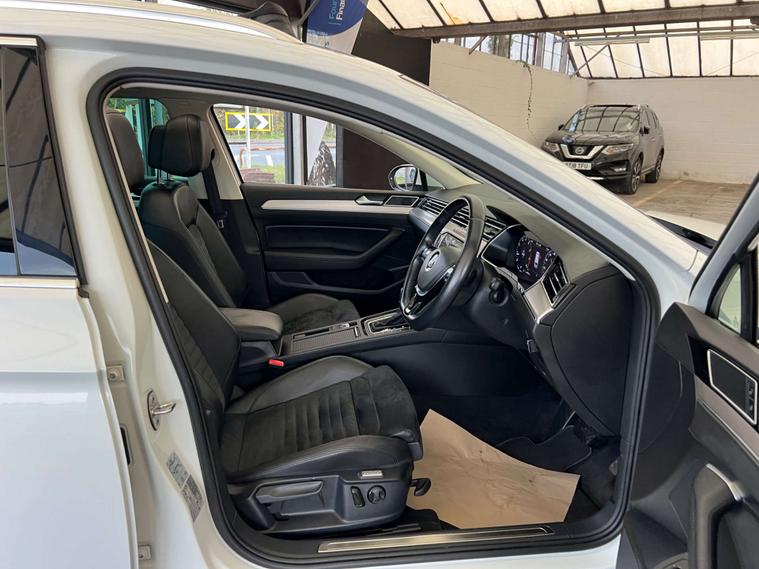 Finished in a pristine Pure White, the Volkswagen Passat exudes elegance and modernity. Its sleek lines and refined design make it a standout choice for those who appreciate both aesthetics and functionality. Step inside, and you'll be greeted by the luxurious Alcantara-Vienna Leather interior in Titan Black, offering a sumptuous and comfortable ride for both driver and passengers.