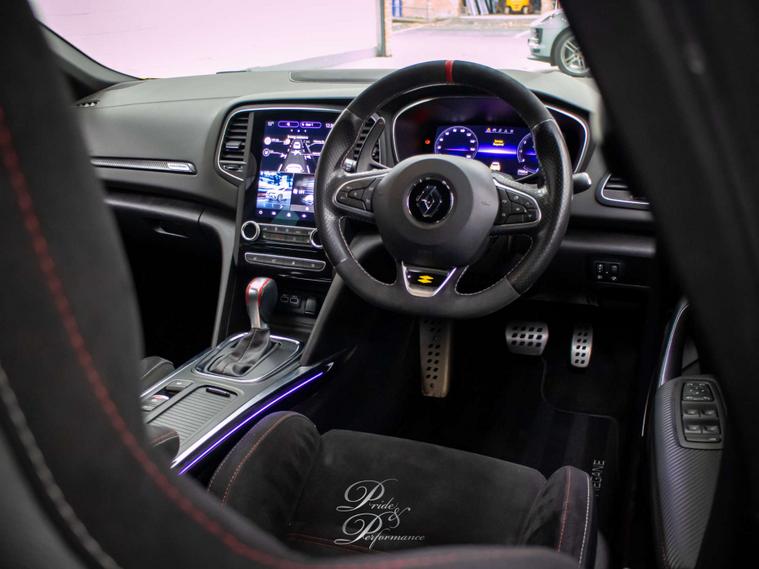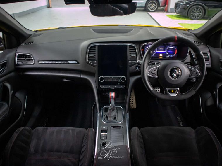 Finished in vibrant Liquid Yellow, this RenaultSport Megane is sure to turn heads wherever you go. But it's not just about looks - this car is packed with extras to enhance your driving experience. From the 19in Alloy Wheels to the Alcantara Black with Red Stitching interior, every detail has been carefully crafted for maximum comfort and style.