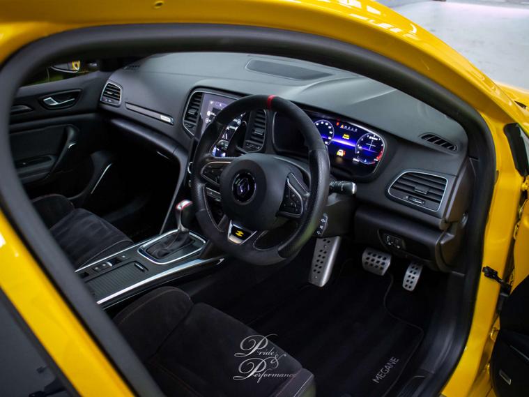 But that's not all - this RenaultSport Megane also comes equipped with Heated Seats, Liquid Yellow paint, and a RS Alcantara Full Grain Leather Steering Wheel. It's the perfect combination of luxury and performance.