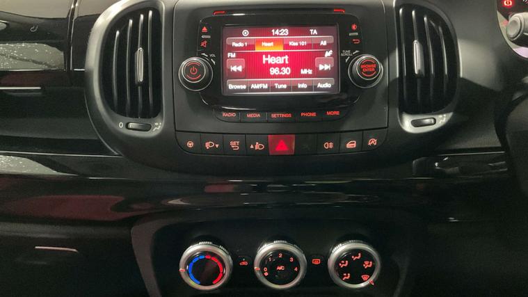 Finished in sleek Black, this Fiat 500l stands out from the crowd. The interior features Cloth upholstery in Red-Black with Red Ambience, complemented by a Black Dashboard for a modern and sporty look. The Darkwave Black extras add a touch of sophistication to this already impressive vehicle.