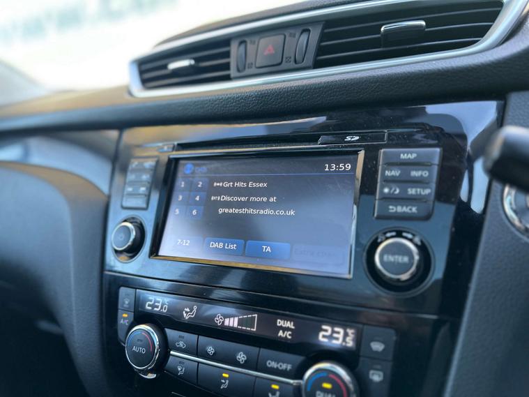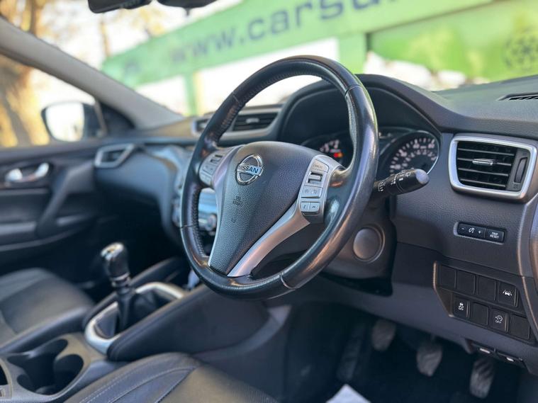 This 2017 Nissan Qashqai DIG-T Tekna is a well maintained example of this popular family SUV. It features a responsive 1.6 litre petrol engine and meets Euro 6 emissions standards. The Tekna trim level ensures a generous specification, including Bi-LED headlights for excellent visibility and a comprehensive Tech Pack. This pack adds the convenience of Bluetooth connectivity for hands free calls and music streaming, alongside a 360 degree camera system to aid parking. Comfort is further enhanced by the Heat Pack, which includes heated seats, and dual zone climate control air conditioning, allowing both driver and passenger to set their preferred temperature.