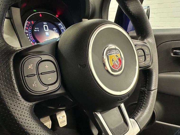 Step inside and you'll be greeted by the luxurious Abarth Sports Leather interior in Black, providing both comfort and style. The Podium Blue accents add a touch of sportiness to the cabin, making every drive a thrilling adventure.