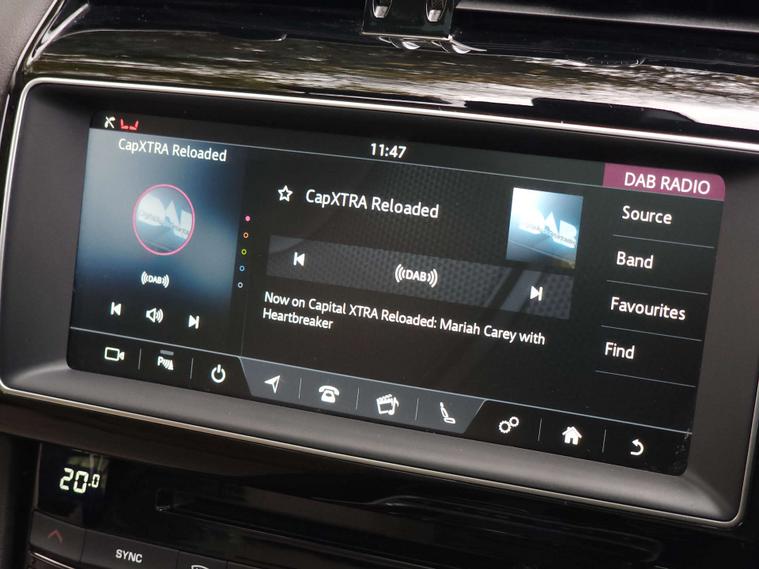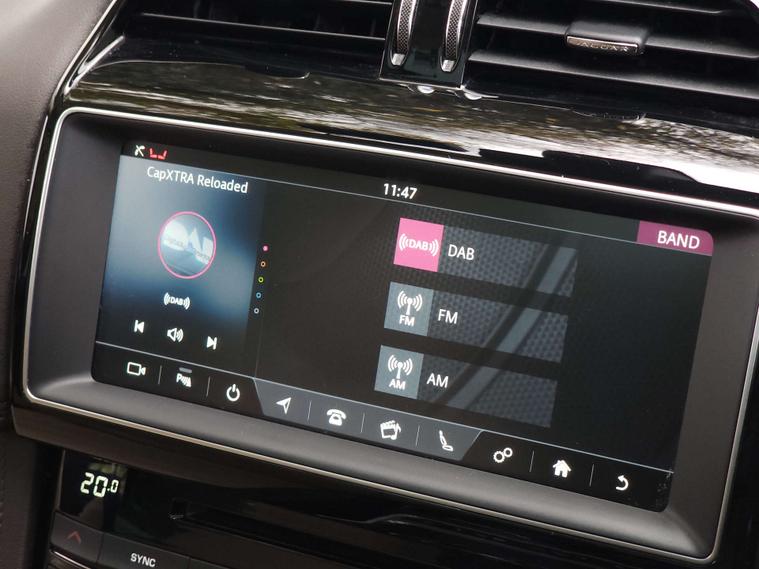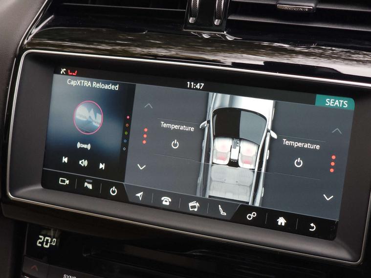 Equipped with Lane Keep Assist, Head-Up Display Infrared Reflective Windscreen, Gesture Tailgate, Rear Seats with Electric Recline Function, inControl Pro Pack with Meridian Digital Sound System, Rear View Camera, Cruise Control with Adaptive Speed Limiter, Front and Rear Parking Aid, Blind Spot Monitor and Reverse Traffic Detection, DAB Digital Radio, Bluetooth Interface with Audio Streaming, Front Heated Seats, Panoramic Roof, Power Folding Exterior Mirrors with Auto Dimming Signature Approach Lamps and Blacked Side Repeaters, Heated Washer Jets, LED Daytime Running Lights, Jaguar Smart Key System with Keyless Start, Hill Launch Assist & ISOFIX Rear.