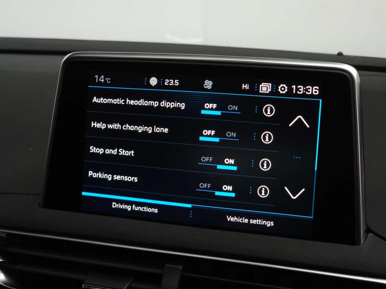 Equipped with a Panoramic Opening Glass Roof, 180 Degree Colour Reversing Camera with Wash System, Front and Rear Parking Sensors, Programmable Cruise Control and Speed Limiter, Lane Departure Warning System, Blue Ambient Lighting to Head-Up Instrumental Panel, DAB Digital Radio, Bluetooth Interface with Audio Streaming, 3D Connected Navigation, Mirror Screen, Smartphone Charging Plate, Apple CarPlay, Android Auto, 19in Diamond Cut Washington Two Tone Alloy Wheels, Power Folding Door Mirrors - Includes LED Courtesy Approach Lights, Visibility Pack, Full LED Headlights, LED Foglamps including Static Cornering Function, Peugeot i-Cockpit, Heated Front Seats and Driver Seat Multi-Point Massage Function, Smart Electric Tailgate, Safety Plus Pack, Peugeot Open and Go System & Hill Assist.