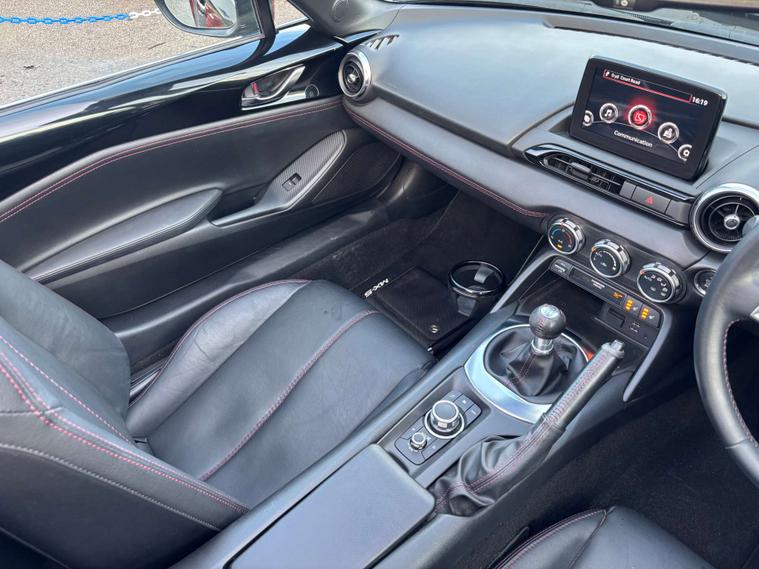 We Specialise selling MX-5's, check out our website for our up to date stock list. This MX-5 will be Supplied with a comprehensive 6 Month Unlimited Mileage Warranty a used car check and new MOT plus 12 months free AA breakdown cover. We offer Competitive Finance subject to status please call for a quotation or log onto our website to use our Finance Calculator. We are located in Cwmbran by appointment only, please call Chris to book your appointment now on 01594332475. Two owners from new with full Service history. It has Black leather upholstery with Heated front seats. Satellite Navigation, Bluetooth Phone and Bose Hi Fi. Bluetooth Audio. Cruise control or speed limiter. Multi function computer. Cupholders. Automatic Air conditioning. Multi function steering wheel. Rear Parking Sensors. Lane Assist. Rain sensing wipers and automatic dipping rear view mirror. Electric wing mirrors. Automatic LED Headlights. Keyless entry and ignition. Refurbished 16" alloy wheels. Catchless folding roof. Great condition throughout. Hpi Clear. Part Exchange Welcome. Please call Chris if you would like to view this MX-5 on Call-Text or WhatsApp 01594332475.