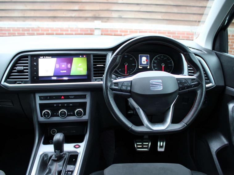 ***FOR VIEWINGS AND TEST DRIVES CALL US ON 01747692736 TO BOOK AN APPOINTMENT***Four wheel drive Ateca automatic fitted with Seat's 2.0 turbo petrol ULEZ compliant engine producing an impressive mpg combined finished in grey metallic with specification including half leather and suede interior, media unit with satellite navigation and DAB radio, apple carplay meaning you can mirror the apps from your phone onto the media screen of the car such as Google maps, bluetooth, media connections, air conditioning, auto lights, cruise control, alloy wheels, roof rails and more, 1 owner, 40000 miles, service history, high up driving position with easy access in and out of the cockpit as well as loads of boot space with the seats up and down***PART EXCHANGE AVAILABLE***USE THE FINANCE CALCULATOR ON OUR WEBSITE dealer's website AND QUOTE YOURSELF A MONTHLY PAYMENT FIGURE TODAY WITH ZERO DEPOSITS AVAILABLE***