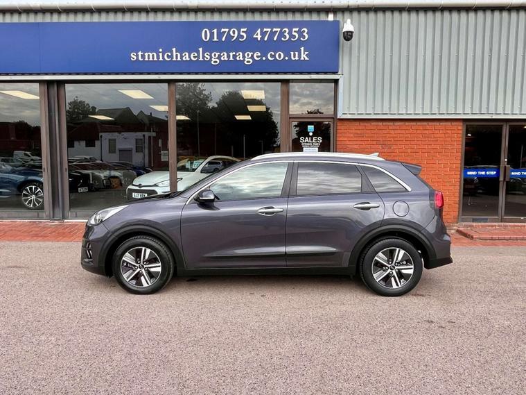 Used 2020 Kia Niro 2 for sale in Sittingbourne, Kent, includes 16" wheels with aero covers, 8.0 inch touch sensitive LCD central multi-function display screen, ABS with EBD and Brake Assist function, Air conditioning with duel zone climate control, Auto High Beam Assist and more. Vehicle Details: Body Type - Estate, CO2 - 110 g/km, Interior Trim - Charcoal / Graphite Cloth & Leather, MPG - 74.3. Dimensions: Height - 1, 545 mm, Length - 4, 355 mm, Width - 1, 805 mm. Emissions: CO2 - 110 g/km, Engine Euro Status - 6. Engine and Drivetrain: Cylinders - 4, Driven Axle - FWD, Engine Capacity - 1, 580 cc, Gears - 6, Steering Wheel - RHD. Fuel Consumption: MPG - 74.3, MPG (Extra Urban) - 72.4, MPG (Urban Cold) - 74.3. Performance: Acceleration (0 - 62 MPH) - 11.1 secs, BHP - 104 bhp, Maximum Speed - 101 mph, Torque - 109 ft-lb. Safety: NCAP (Adult Rating) - 83, NCAP (Overall Rating) - 4, NCAP (Pedestrian Rating) - 57. Weight and Capacities: Gross Weight - 1, 930 kg, Seats - 5. Color: Platinum Graphite Metallic. Transmission: Automatic, Fuel Type: Hybrid, Insurance Group: 12E, Doors: 5, Engine Size: 1.6L. Features include: 16" wheels with aero covers, 8.0 inch touch sensitive LCD central multi-function display screen, ABS with EBD and Brake Assist function, Air conditioning with duel zone climate control, Auto High Beam Assist, Auto Stop/Start, Auto-headlamps (on/off), Bluetooth Hands free Phone And Media Connectivity, Cruise Control, DAB Radio, Eco Drive Mode, Electric mirrors, Electronic Handbrake With Auto Hold, Fog Lights Front and Back, Half Synthetic leather interior, Heated Door Mirrors, Hill Start Assist, Isofix child seat anchor points, Lane Departure Warning System, LED daytime running lights, Low speed pre collision assist, Metallic Paintwork, Mobile Integration using Apple CarPlay and Android Auto, Paddle Change, Parking Camera, Power Fold Electric Mirrors, Privacy Glass (Rear Windows & Tailgate), Rain Sensing Windscreen Wiper, Rear seat with 40/60 split folding, Remote central locking, Sat Nav available in display screen through Apple Play / Android Auto USB phone connectivity, Selectable driving modes that affect steering and engine mapping, Speed sign recognition system, Sport Drive Mode, Synthetic leather multi-function steering wheel with telescopic adjustment, Touchscreen Media, Traction Control, USB input/charging port. This vehicle comes with 2 keys, MOT, full HPI check, professional valet including paintwork care, comprehensive warranty, thorough Pre-Delivery Inspection with any required servicing carried out to manufacturer standards. No admin fees or extra hidden costs are applicable. Excellent rates and flexible finance packages are available. Established over 40 years, St Michaels Garage is a family run business with high standards and a hassle-free, helpful approach. With 2 branches located in Sittingbourne, Kent, contact us today to discuss your requirements, including a part exchange valuation and to book a test drive.