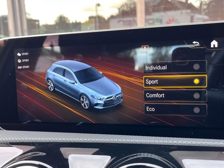 Used 2019 Mercedes-Benz A Class A 200 SPORT EXECUTIVE for sale in Sittingbourne, Kent. This vehicle features 17" 10 Spoke Alloy wheels, 10.25" digital drivers instrument cluster, 10.25" touch sensitive LCD central multi-function display screen, ABS with EBD and Brake Assist function, Air conditioning with dual zone climate control, Automatic transmission, Petrol fuel type, and Iridium Silver Metallic colour. It has 21, 250 miles on the odometer. Price is £17, 995. Additional features include Heated Seats, Lane Departure Warning System, Bluetooth handsfree phone and media connectivity, Parking Camera, Satellite navigation system with 10.25 inch colour touch screen with 3D and voice, and more. The vehicle has full service history and 2 owners.