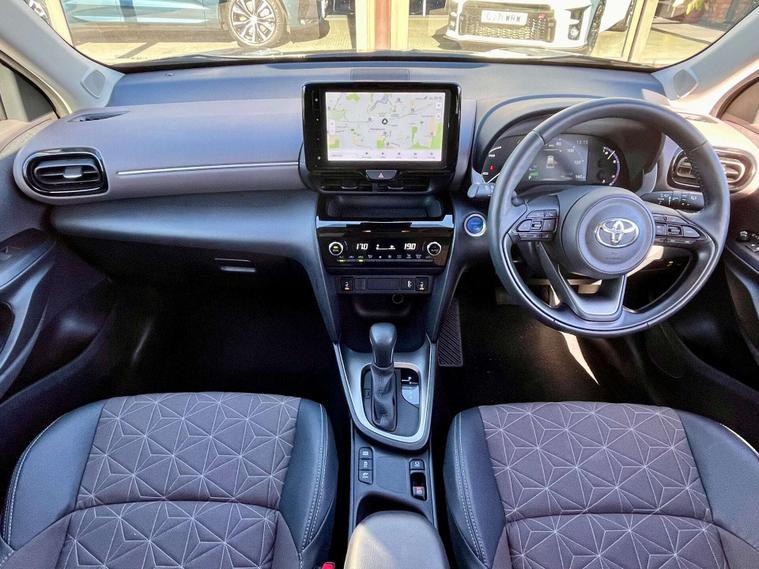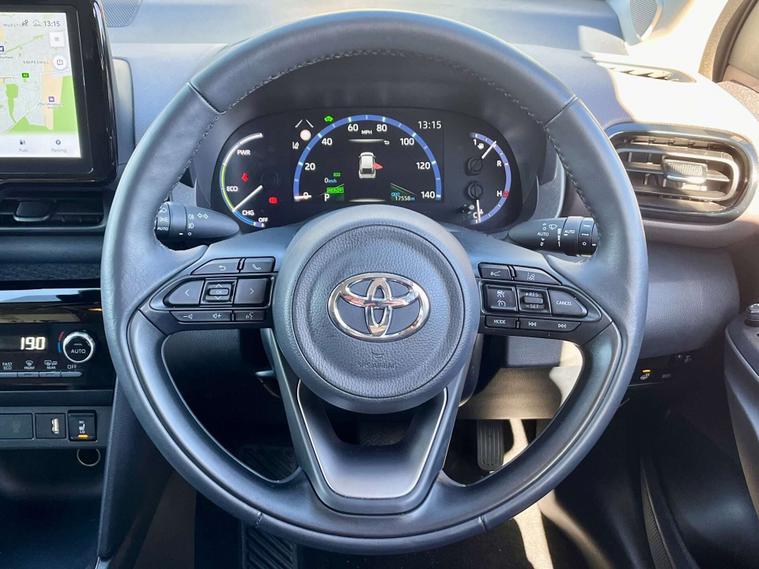 2022 (72) Toyota Yaris Cross EXCEL 1.5L (114 bhp) with 17, 700 miles, Automatic, Hybrid fuel type, 12E insurance group, Decuma Grey metallic colour, 5 doors, 1.5L engine size. Vehicle features 18" Bi-tone Dark grey machined face alloy wheels, 9" HD Toyota Smart Connect multimedia system with wireless Smartphone integration incl Apple CarPlay & Android Auto™, ABS with EBD and Brake Assist function, Air conditioning with dual zone climate control, Auto dimming rear view mirror, Auto High Beam Assist, Auto Stop/Start, Auto-headlamps (on/off), Blind Spot Monitoring System (BLIS), Bluetooth Hands free Phone and Media Connectivity, Cruise Control & Speed Limiter, DAB Radio, Driver's Alert System, Eco Drive Mode, Electric mirrors, Electronic Handbrake with Auto Hold, Fog Lights Front and Back, Front and rear electric windows, Half Synthetic leather interior, Heated Door Mirrors, Heated Seats, Heated Steering Wheel, Hill Start Assist, Isofix child seat anchor points, Lane Departure Warning System, Keyless Start, LED daytime running lights, LED low beam LED high beam headlights with ellipsoidal lenses, Low speed pre collision assist, Low tyre pressure indicator with rim mounted sensors, Metallic Paintwork, Mobile Integration using Apple CarPlay and Android Auto, Parking Camera, Parking Sensors, Power Fold Electric Mirrors, Power-lift tailgate, Privacy Glass (Rear Windows & Tailgate), Rain Sensing Windscreen Wiper, Rear Cross Traffic Alert, Rear seat with 40/60 split folding, Remote central locking, Satellite navigation system with colour, 9 inch display, touch screen, 3D and voice, maps updated and traffic information, Selectable driving modes that affect steering and engine mapping, Speed sign recognition system, Sport Drive Mode, Synthetic leather multi-function steering wheel with telescopic adjustment, Touchscreen Media, Traction Control, USB input/charging port. Additional technical details include Hatchback body type, 112 g/km CO2 emission, Taupe fabric & synthetic leather interior trim, 65.7 MPG, 1 previous keeper, 3 cylinders, FWD driven axle, 1490 cc engine capacity, 6 gears, Right Hand Drive steering wheel. Performance includes acceleration 0-62 mph in 11.2 seconds, 114 bhp, maximum speed 105 mph, 89 ft-lb torque; weight and capacities include 5 seats.