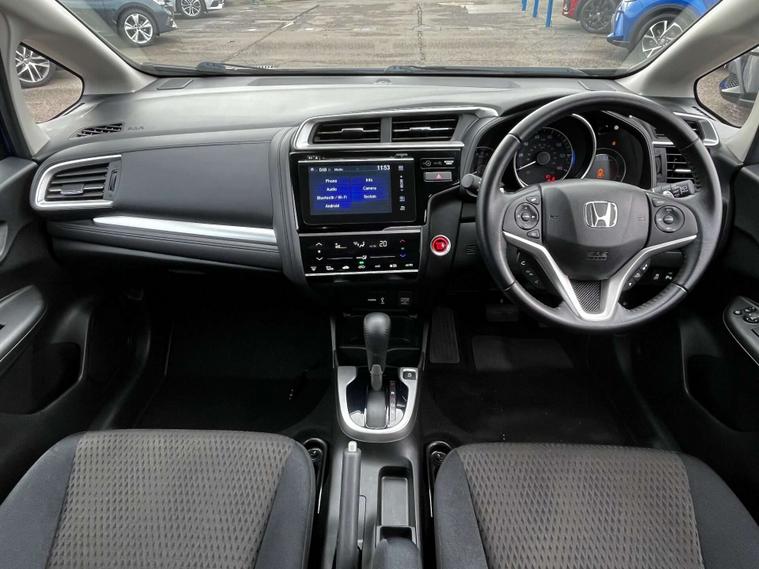 Used 2019 Honda Jazz I-VTEC EX 1.3L (101 bhp) Blue, Automatic, hatchback, 5 doors, petrol, 9, 500 miles, insurance group 13E, engine size 1.3L, 2019 (69), 2 keys, MOT, full HPI check, professional valet including paintwork care, comprehensive warranty, thorough Pre-Delivery Inspection with required servicing to manufacturer standards. Features include: 16" Magnetic Grey Machine Cut & Polished Alloy Wheels, 8.0 inch touch sensitive LCD central multi-function display screen, ABS with EBD and Brake Assist function, Air conditioning with dual zone climate control, Auto Stop/Start, Auto-headlamps, Bluetooth Hands free phone and media connectivity, CD Player + Aux Input, DAB Radio, Electric mirrors, Fog Lights front and back, Front & rear electric windows, Parking Sensors front & back, Heated Door Mirrors, Hill Start Assist, Lane Departure Warning System, Isofix child seat anchor points, Keyless Start and Entry, LED daytime running lights, Low tyre pressure indicator with rim mounted sensors, Metallic Paintwork, Paddle Change, Parking Camera, Privacy Glass (Rear windows & tailgate), Rain Sensing Windscreen Wiper, Honda's unique Magic Seats, Remote audio controls on steering wheel, Remote central locking, Selectable driving modes (steering and engine mapping), Speed sign recognition system, Sport Drive Mode, Synthetic leather multi-function steering wheel with telescopic adjustment, Touchscreen Media, Traction Control, USB input/charging port.
