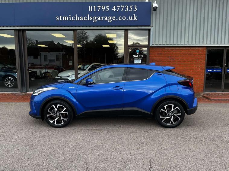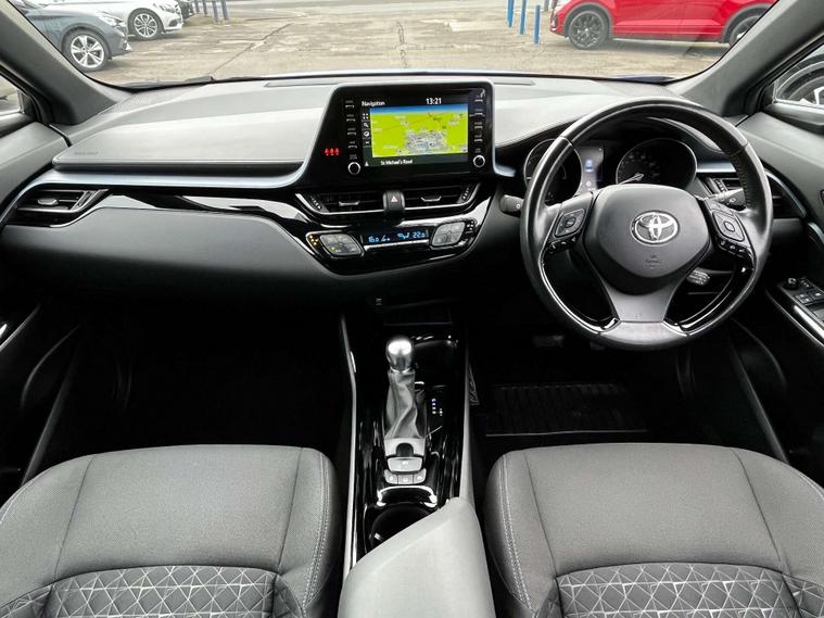 Used 2021 Toyota C-HR DESIGN for sale in Sittingbourne, Kent, includes 18" Midnight black diamond cut and polished alloy wheels, 8.0 inch touch sensitive LCD central multi-function display screen, ABS with EBD and Brake Assist function, Air conditioning with duel zone climate control, Auto dimming rear view mirror and more
