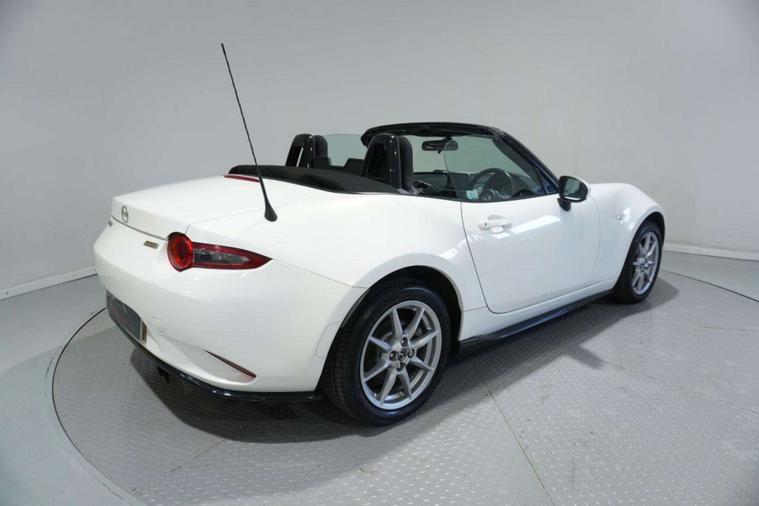 FINISHED IN THE STUNNING ARCTIC WHITE WITH BLACK CLOTH UPHOLSTERY AND 16-INCH SILVER ALLOY WHEELS, THIS MX-5 LOOKS EVERY BIT AS FUN AS IT IS TO DRIVE. UNDER THE BONNET IS THE LIGHTWEIGHT AND RESPONSIVE 1.5-LITRE SKYACTIV-G PETROL ENGINE PRODUCING 131 PS, DELIVERING SHARP HANDLING AND A TRULY ENGAGING MANUAL DRIVING EXPERIENCE. THIS EURO 6 COMPLIANT ENGINE COMBINES GREAT PERFORMANCE WITH IMPRESSIVE FUEL EFFICIENCY.