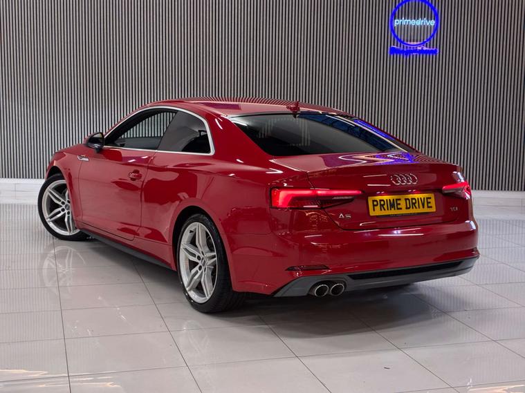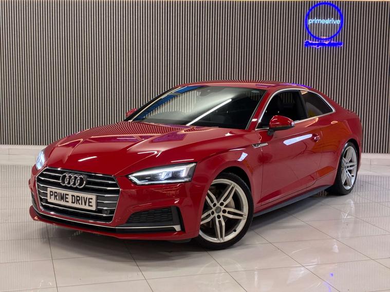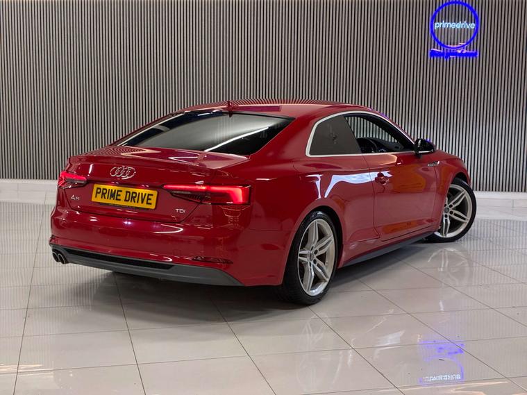 Dressed in a striking red finish, the Audi A5 exudes sophistication and style, turning heads wherever it goes. Its sleek lines and dynamic silhouette are complemented by the distinctive S Line detailing, ensuring you make a statement every time you take the wheel.
