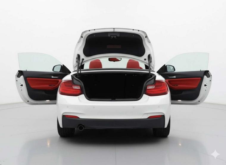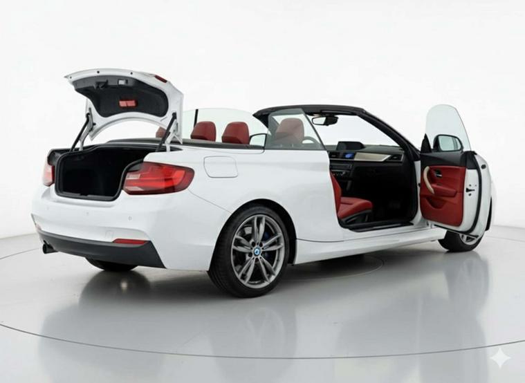Equipped with luxurious extras such as Alpine White, Dakota Leather - Coral Red with Black Highlight with Black Interior, Enhanced Bluetooth Telephone Preparation with USB Audio Interface, and Voice Control, as well as Interior Trim - Black High-Gloss with Oxide Silver Matt Finisher, this BMW 2 Series offers both style and functionality.