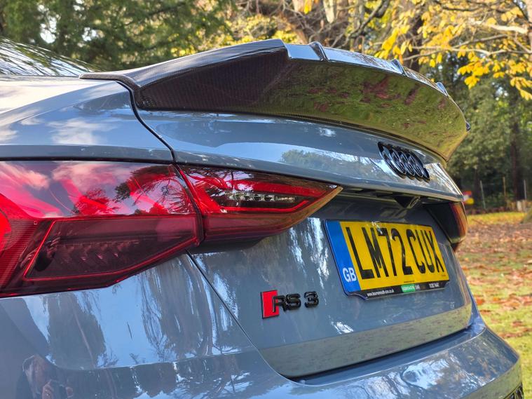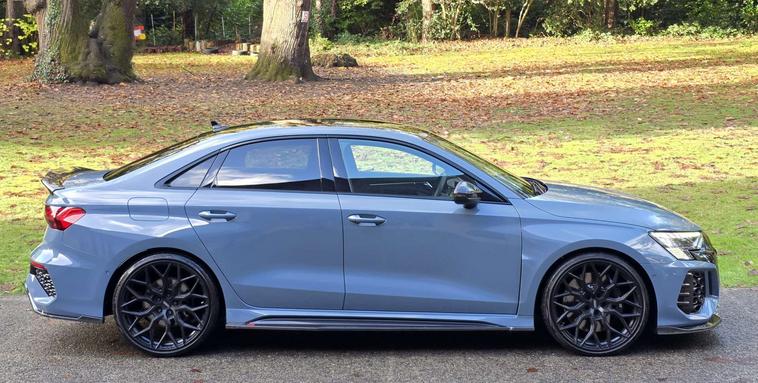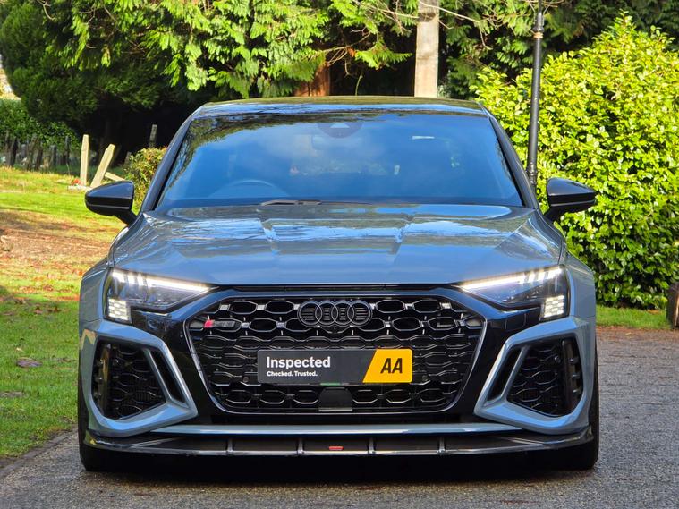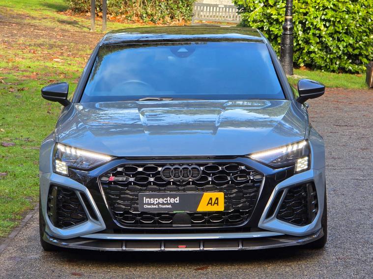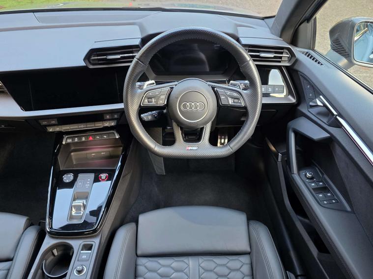 This 2022 Audi RS3 TFSI Carbon Black presents an exceptional opportunity with its remarkably low mileage of just 13, 000 miles. This Euro 6 compliant, four wheel drive model boasts a powerful 2.5 litre petrol engine and comes with a clear vehicle history check. Inside, you'll find the convenience of the Audi Smartphone Interface, including Android Auto, and a Bluetooth interface for seamless connectivity. Comfort is enhanced by heated front seats, while the Light and Rain Sensor automatically manages headlights. Parking is made effortless with the Parking Assist system, featuring sensors at both the front and rear.
