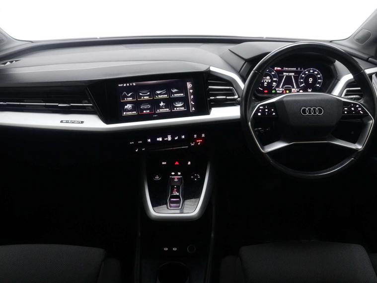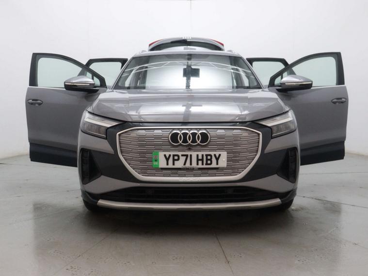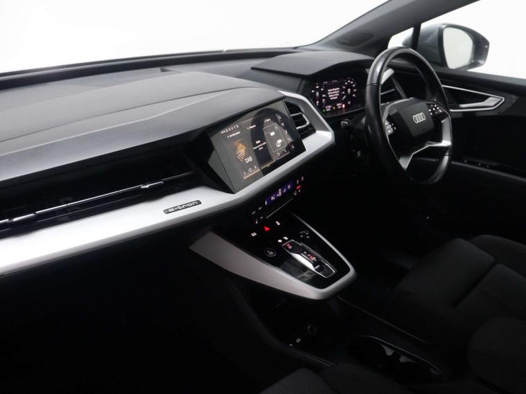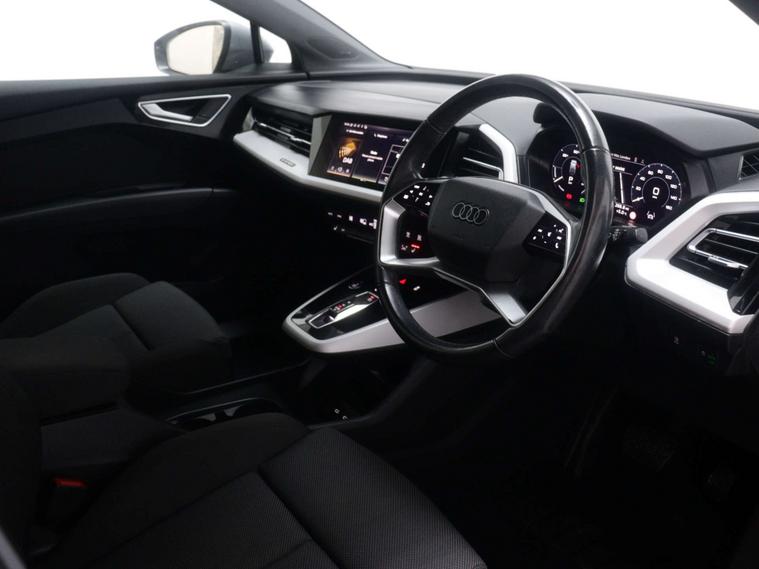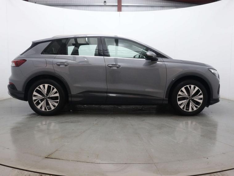 Finished in a sleek Grey exterior, the Audi Q4 E-tron exudes sophistication and modernity. Its spacious 5-door design offers ample room for passengers and cargo, making it the perfect choice for families or those who love to travel in comfort.