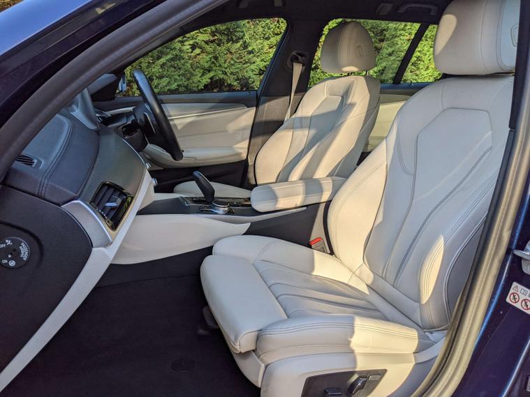 Finished in a sleek Mediterranean Blue colour, this BMW 5 Series comes with a range of luxurious extras to enhance your driving experience. The Dakota Leather interior with Exclusive Stitching in Ivory White with Black accents exudes elegance, while the Head-Up Display provides convenience and safety on the road.