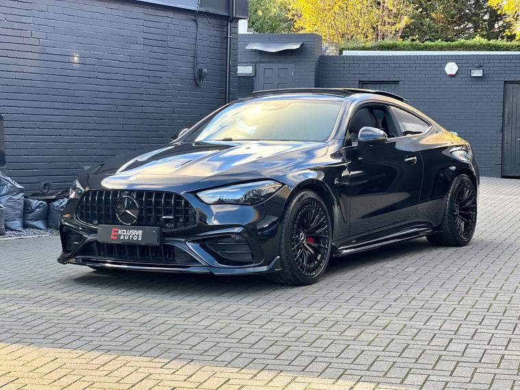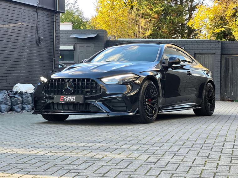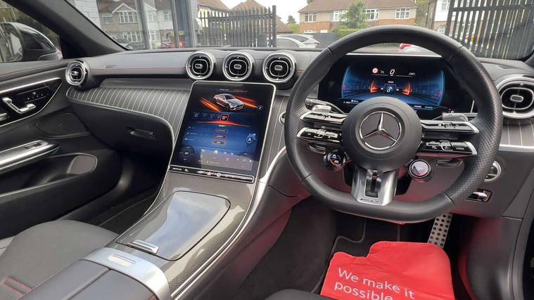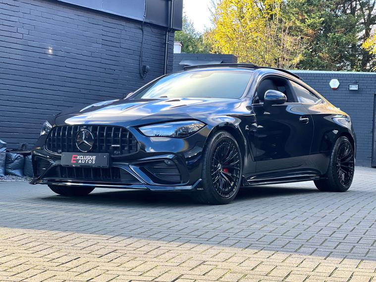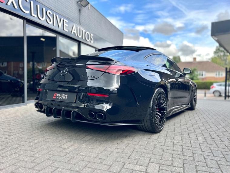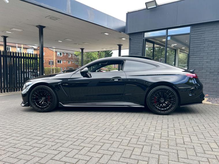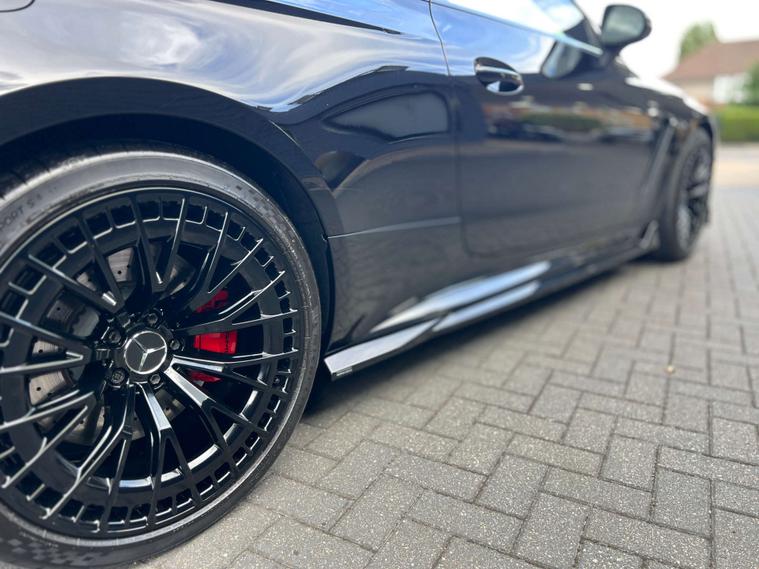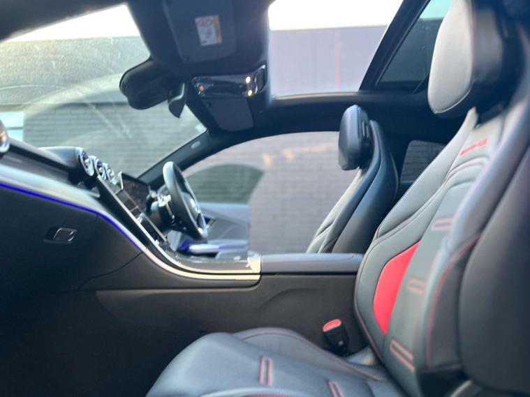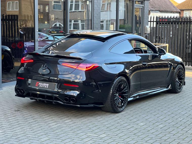 2K MILES + EXTENDED BODYKIT + PANORAMIC GLASS SUNROOF + ALL BLACK SPEC + BLACKOUT EXTERIOR STYLING + RED BRAKE CALIPERS + BLACK EXHAUST TIPS + REAR SPOILER + BLACK BADGES + BLACK AMG SPORTS SEATS WITH RED ACCENTS & STITCHING + RED SEAT BELTS + APPLE PLAY + SAT NAV + BLUETOOTH DAV RADIO + CARBON INTERIOR TRIM + 360 CAMERAS + KEYLESS ENTRY / PUSH START BUTTON + ELECTRIC HEATED SEATS + MERCEDES WARRANTY/ ROAD SIDE ASSIST REMAINING