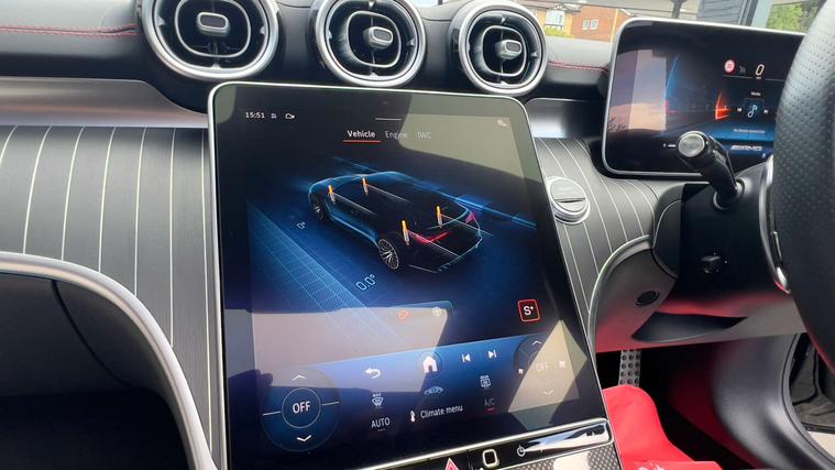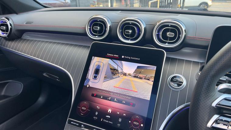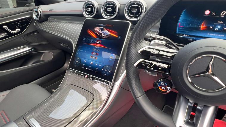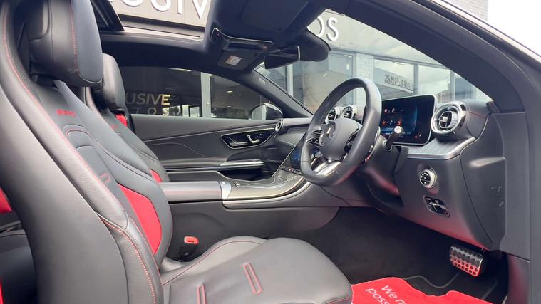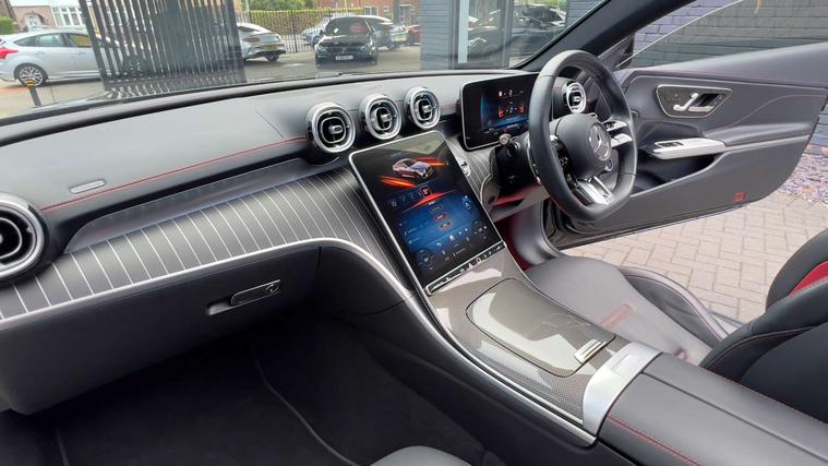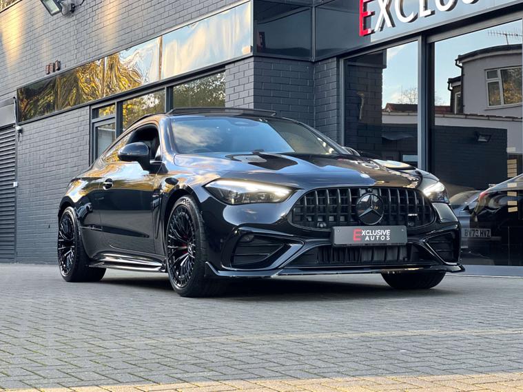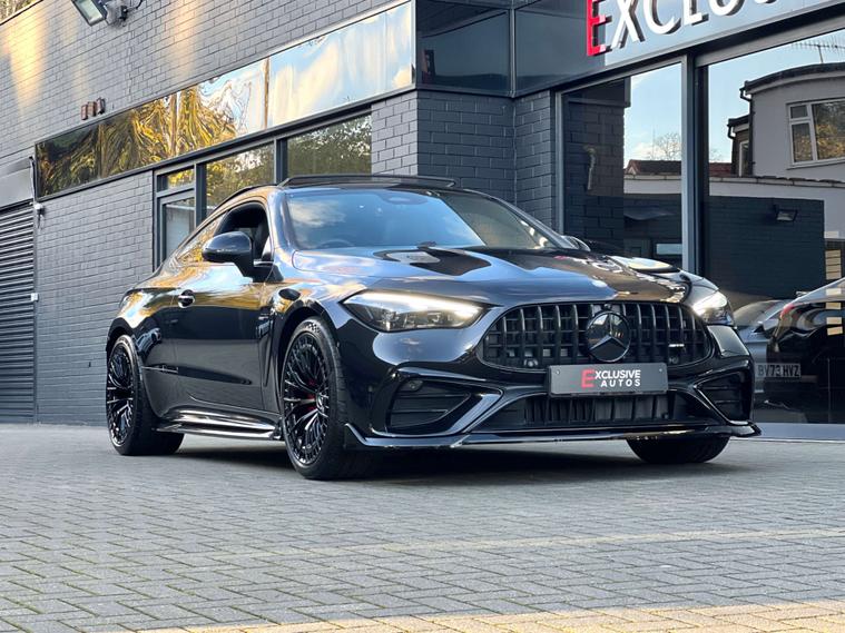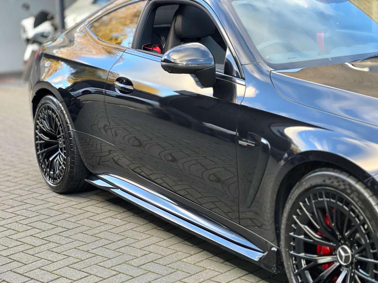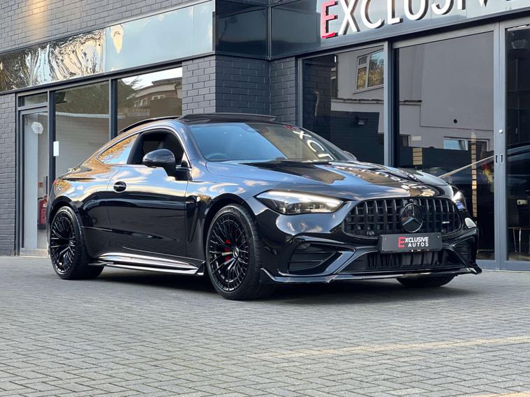 2K MILES + EXTENDED BODYKIT + PANORAMIC GLASS SUNROOF + ALL BLACK SPEC + BLACKOUT EXTERIOR STYLING + RED BRAKE CALIPERS + BLACK EXHAUST TIPS + REAR SPOILER + BLACK BADGES + BLACK AMG SPORTS SEATS WITH RED ACCENTS & STITCHING + RED SEAT BELTS + APPLE PLAY + SAT NAV + BLUETOOTH DAV RADIO + CARBON INTERIOR TRIM + 360 CAMERAS + KEYLESS ENTRY / PUSH START BUTTON + ELECTRIC HEATED SEATS + MERCEDES WARRANTY/ ROAD SIDE ASSIST REMAINING