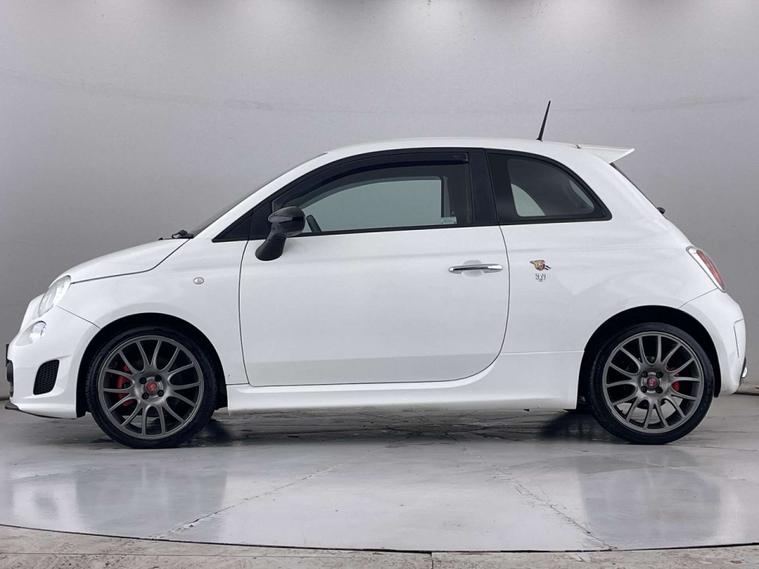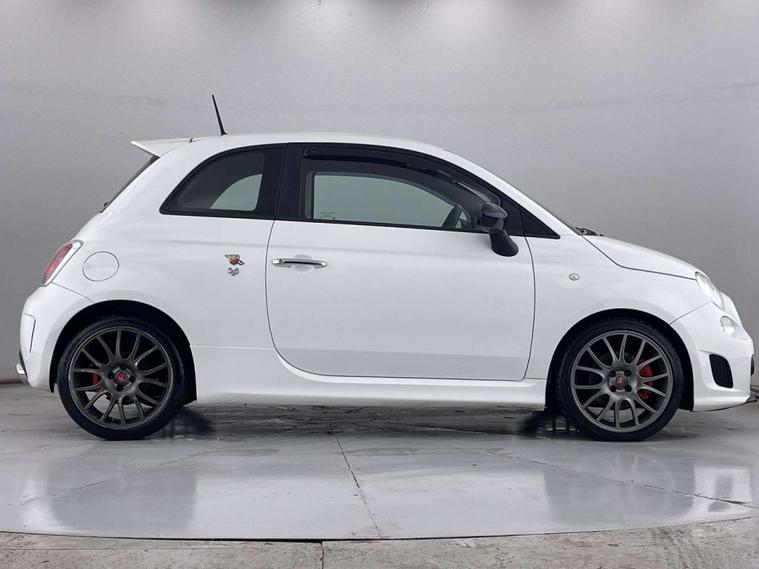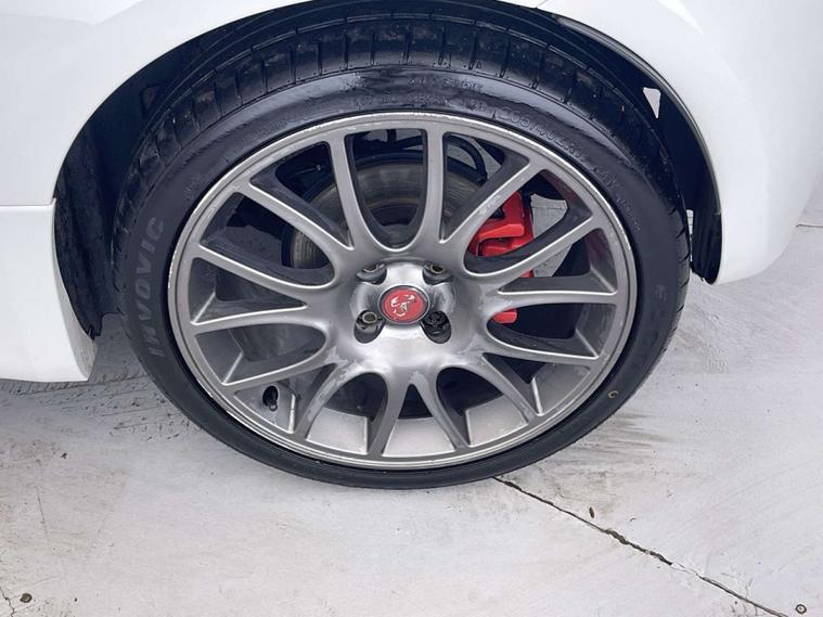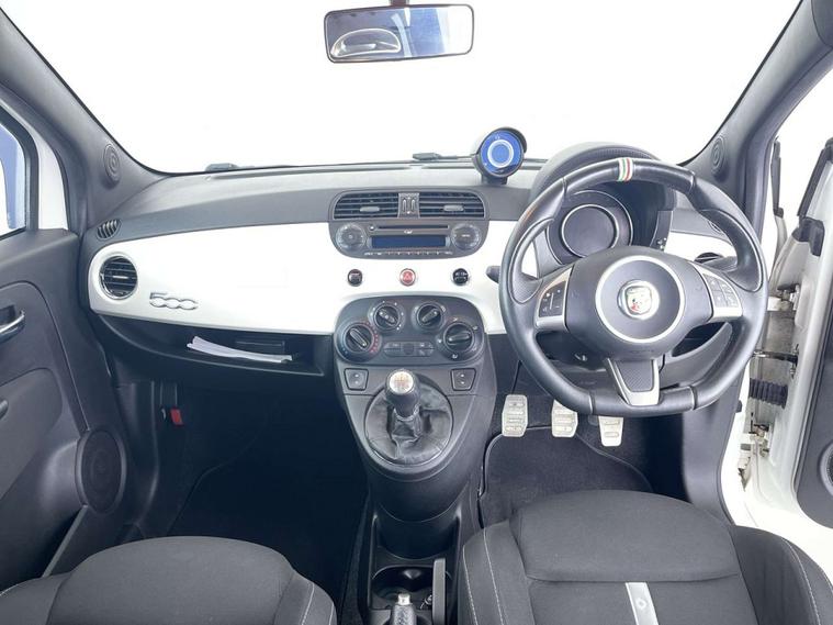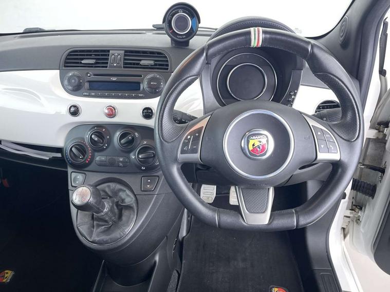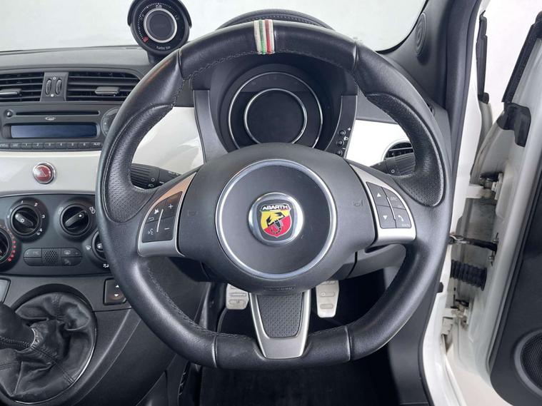 Finished in stunning Gara White, this Abarth 595 turns heads wherever it goes. The black cloth interior, complemented by black Abarth side stripes and mirrors, gives it an unmistakably sporty presence, while the striking red brake calipers add the perfect performance touch.