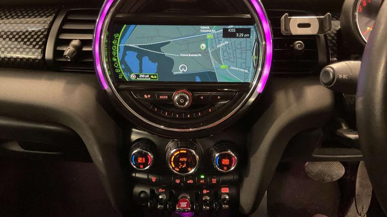 This Mini Hatch comes loaded with extras, including 17in Alloy Wheels, Automatic Dual Zone Air Conditioning, CHILI Pack, Cruise Control with Brake Function, Diamond Cloth-Leather interior in Carbon Black, Enhanced Bluetooth with USB Audio, Front Centre Armrest, Interior Light Pack, MINI Driving Modes, MINI Excitement Pack, Rain Sensor and Automatic Headlight Activation, Roof and Mirror Caps in Black, and Storage Compartment Pack.