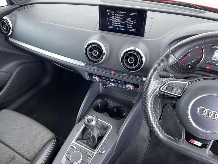 Finished in a striking Brilliant Red colour, this Audi A3 is sure to turn heads wherever you go. The interior is equally impressive, featuring Biathlon Cloth-Pearl Nappa Leather with S Line Embossing in Black with Silver Stitching, offering a luxurious and comfortable driving environment.