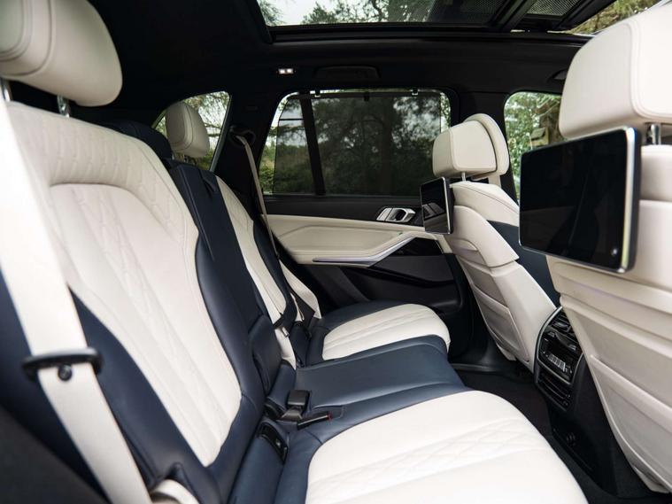 The 22in Alloy Wheels - M Light Double-Spoke Style 742 M Bicolour with Mixed Tyres not only look incredible but also provide a smooth and comfortable ride. The Sky Lounge Panoramic Glass Sunroof adds a touch of elegance, while the BMW Individual Extended Merino Leather - Ivory White-Night Blue interior exudes sophistication.