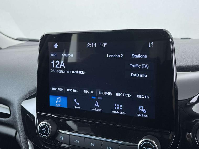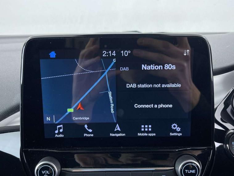 Finished in striking Black with a Shadow Black Contrast Roof and Mirrors, this Fiesta stands out with a modern, sophisticated look. Inside, the Ebony Elow-Domo Fabric seats provide comfort for every journey, while heated seats ensure warmth on colder days. Practical features such as rear parking sensors, Navigation, and Apple CarPlay make driving and connectivity effortless, whether navigating city streets or longer trips.