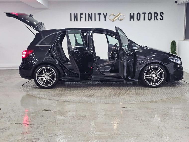 Infinity Motors presents the luxurious Mercedes-Benz B-Class 1.5 B 180 AMG Line Premium+ D 5dr. This stunning vehicle, finished in sleek Black, exudes sophistication and style.