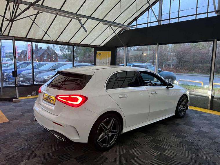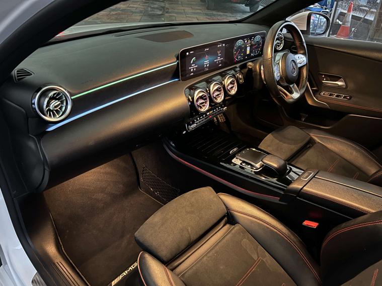 Finished in a pristine Polar White, the A-Class exudes sophistication and style, making a bold statement on every road. Its sleek lines and dynamic design are complemented by the AMG Line's sporty enhancements, ensuring you turn heads wherever you go.