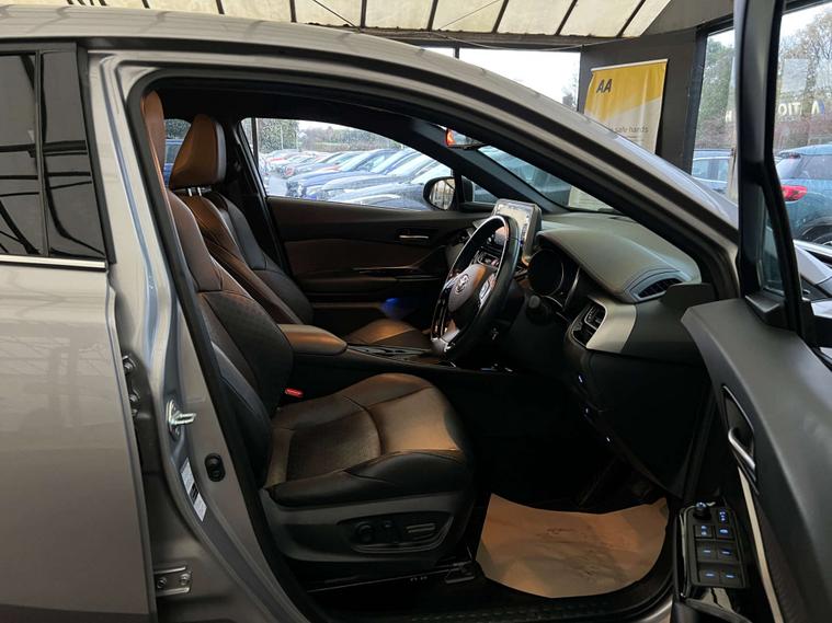 Finished in a sophisticated Silver, the Toyota C-hr exudes an air of elegance and contemporary flair. Its striking design is further enhanced by the 18-inch alloy wheels with a 5 double spoke design in a chic Matt Black finish, ensuring you make a statement wherever you go.