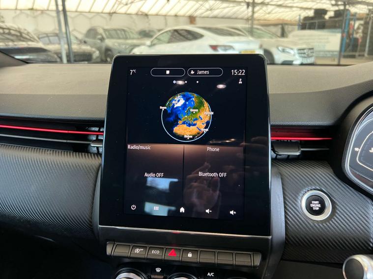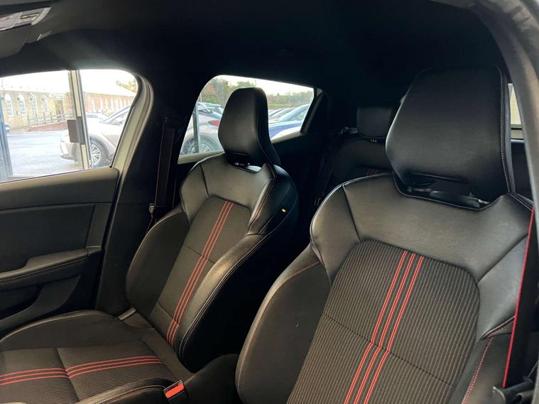 Finished in a pristine Glacier White, the Renault Clio exudes sophistication and modernity. Its sleek lines and dynamic design are sure to turn heads wherever you go. Step inside, and you'll be greeted by the luxurious RS Line Fabric interior, featuring Black-Red Striped seats with striking Red Contrast Stitching, adding a touch of sporty elegance to every journey.