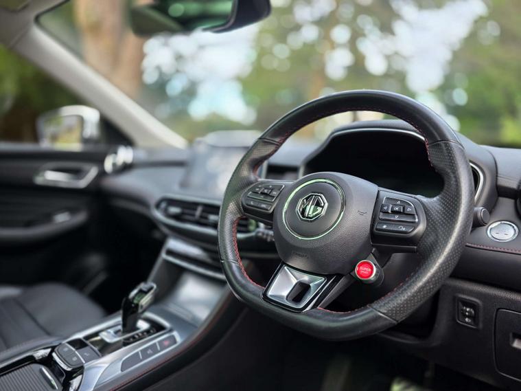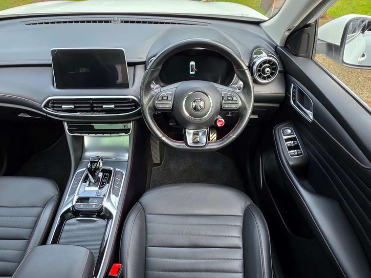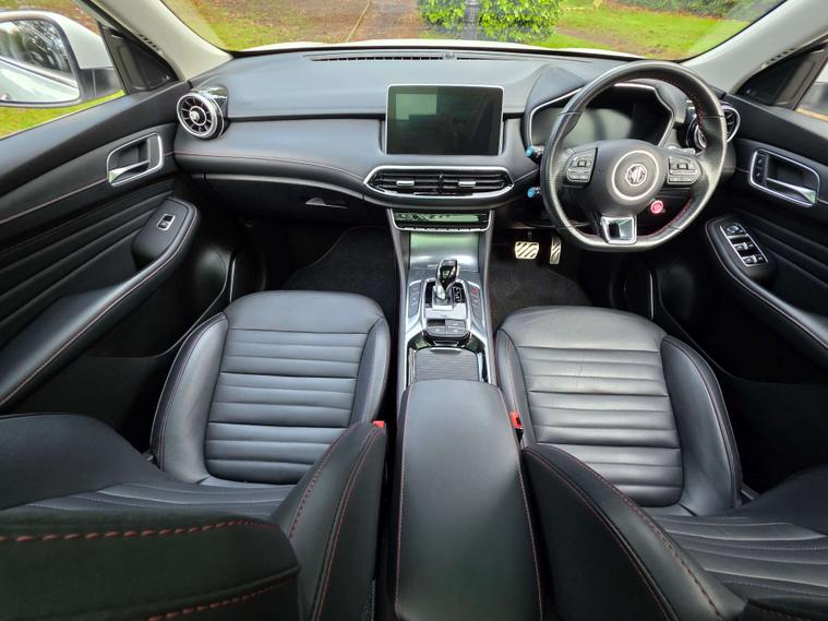 This 2022 MG HS T-GDI Exclusive presents an exceptional ownership proposition with its very low mileage of just 17655 miles, a clear vehicle history check, and a full dealership service history. This Euro 6 compliant 1.5 litre petrol model, finished in the Exclusive trim, offers a refined driving experience. Inside, you'll find striking Red and Black leather upholstery, complemented by keyless entry with a push button engine start for ultimate convenience.