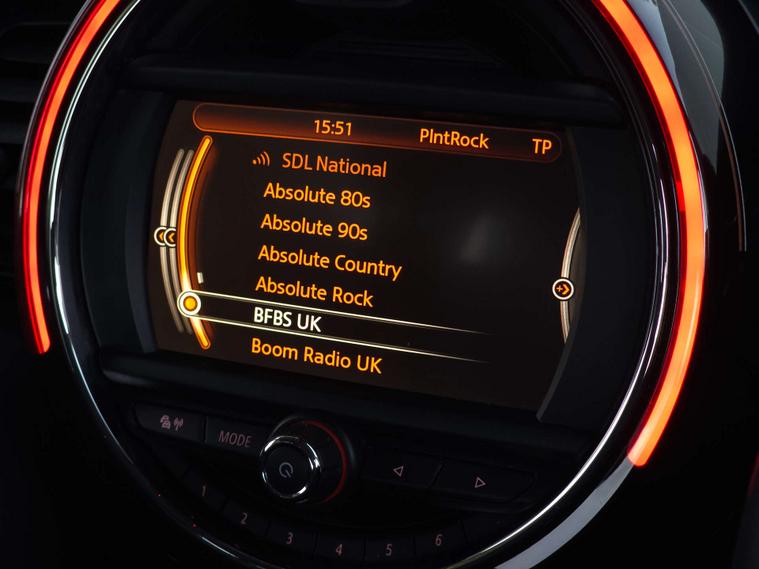 Equipped with DAB Digital Radio, Bluetooth Interface with Audio Streaming, Visual Boost Radio, 17in MINI Seven Alloy Wheels, MINI Seven Pack, Electrically Adjustable and Heated Exterior Mirrors, Dual Zone Automatic Air Conditioning, Interior Light Pack & Front Passenger ISOFIX and Airbag De-Activation Switch.