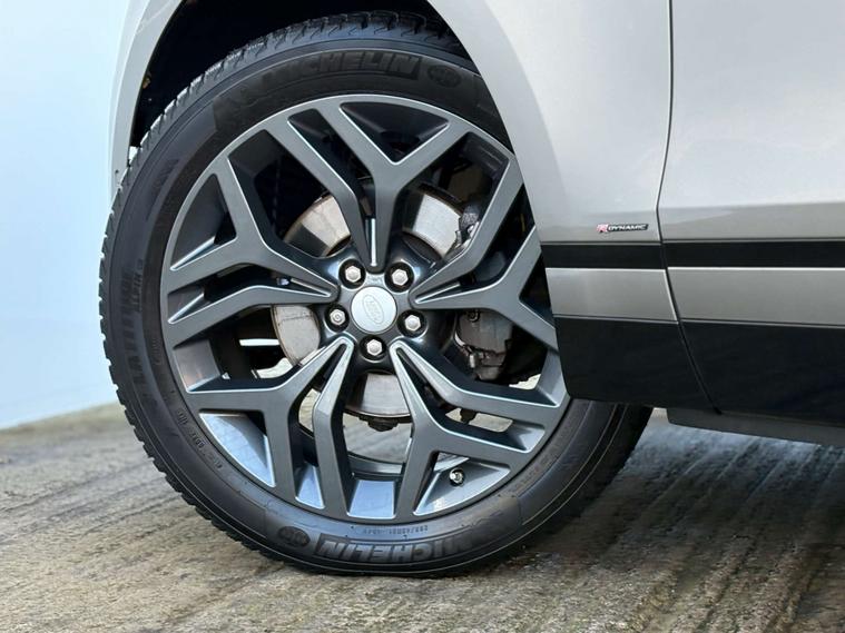 The Land Rover Range Rover Velar is equipped with a Meridian Signature Sound System 1600W, delivering an unparalleled audio experience that transforms every journey into a concert on wheels. Whether you're cruising through the city or exploring the countryside, the 21in Alloy Wheels - 10 Spoke - Style 1033 with Gloss Black Finish provide a striking presence on the road.