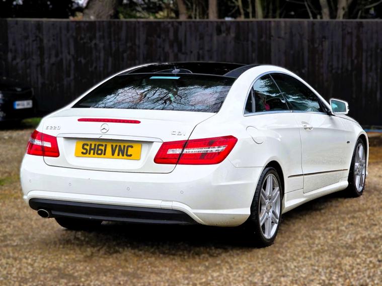 Introducing the luxurious Mercedes-benz E-class 2.1 E220 Sport CDi BlueEfficiency Auto 2dr. This stunning vehicle, finished in elegant White, exudes sophistication and style.