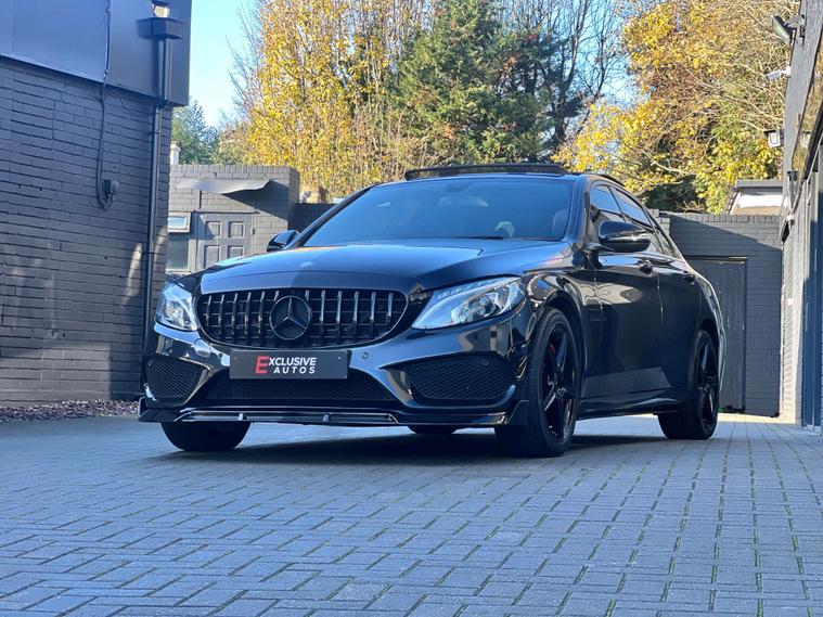 C63 AMG STYLE BODYKIT + PANORAMIC GLASS SUNROOF + SAT NAV + BLUETOOTH + BLACK ALLOYS + RED BRAKE CALIPERS + BLACKOUT EXTERIOR STYLING + C63 STYLE QUAD EXHAUST + KEYLESS ENTRY / PUSH START BUTTON + HEATED ELECTRIC SEATS + DIGITAL DUAL CLIMATE CONTROL/ AC + LED LIGHTS + REVERSE CAMERA + BLACK SPORTS LEATHER + AUTO/ PADDLES ON STEERING WHEEL + DAB RADIO + ARM REST + PARK SENSORS + C63 AMG STYLE BODYKIT, QUAD EXHAUST TIPS + REAR SPOILER + SIDE SKIRTS & BLACK GRILL.