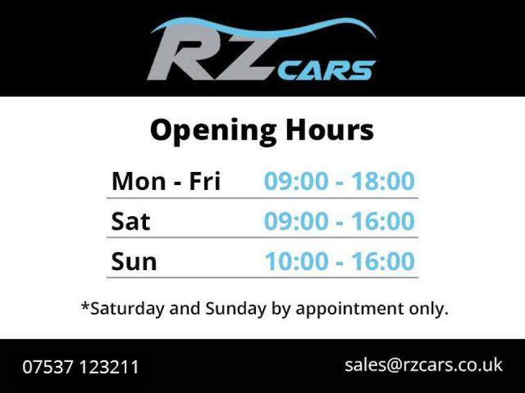 6 MONTHS MINIMUM NATIONWIDE WARRANTY AND BREAKDOWN COVER INCLUDED - ALL OF OUR VEHICLES ARE PREPARED TO A HIGH STANDARD - HPI CLEAR - GENUINE MILEAGE - MINIMUM 8 MONTHS MOT - EXCELLENT SERVICE HISTORY - ALL VEHICLES CLEANED - SATURDAY AND SUNDAY APPOINTMENT ONLY! RZ Cars is a small, independent dealership offering quality used vehicles at competitive prices. We pride ourselves on providing a simple yet personalised car-buying experience, supported by a team of highly trained and experienced professionals with decades of expertise in the motor industry.