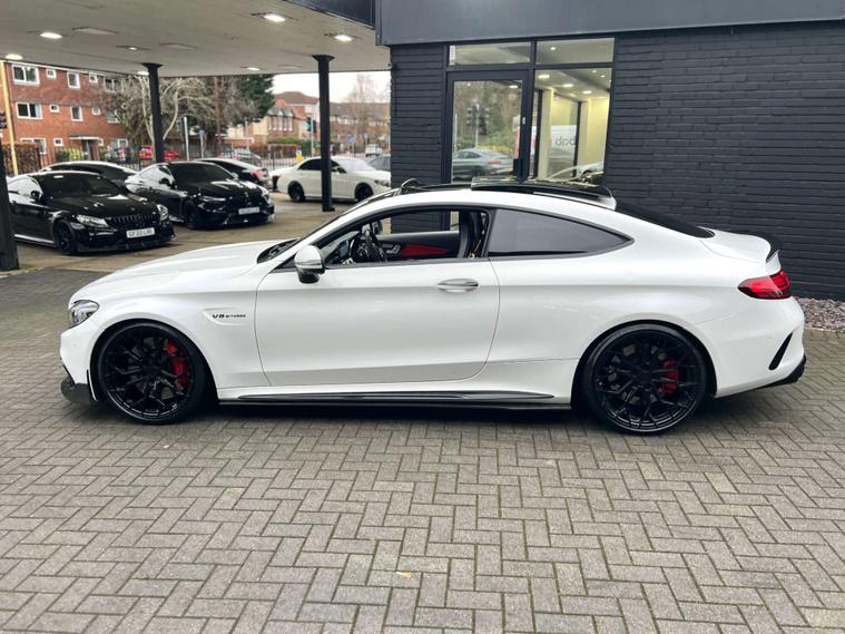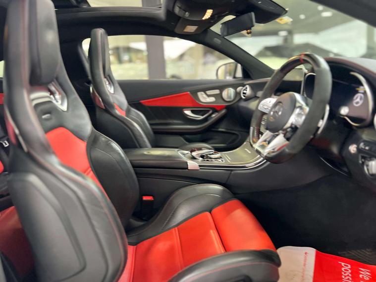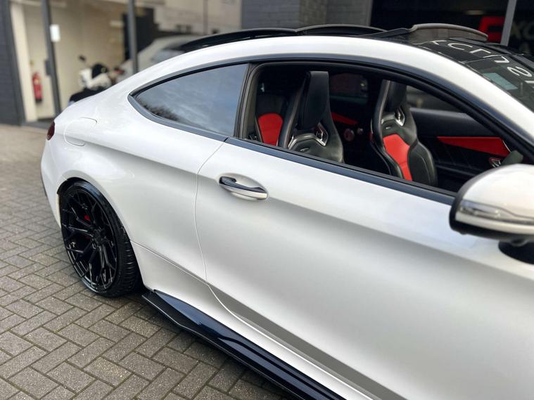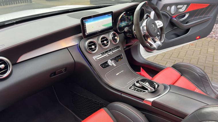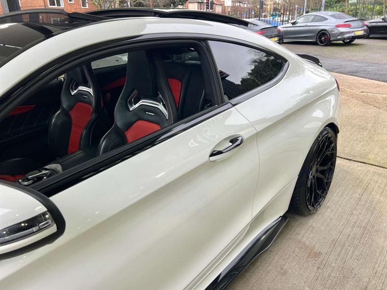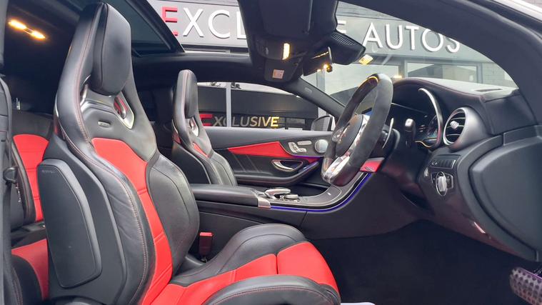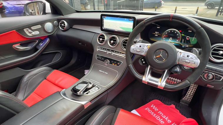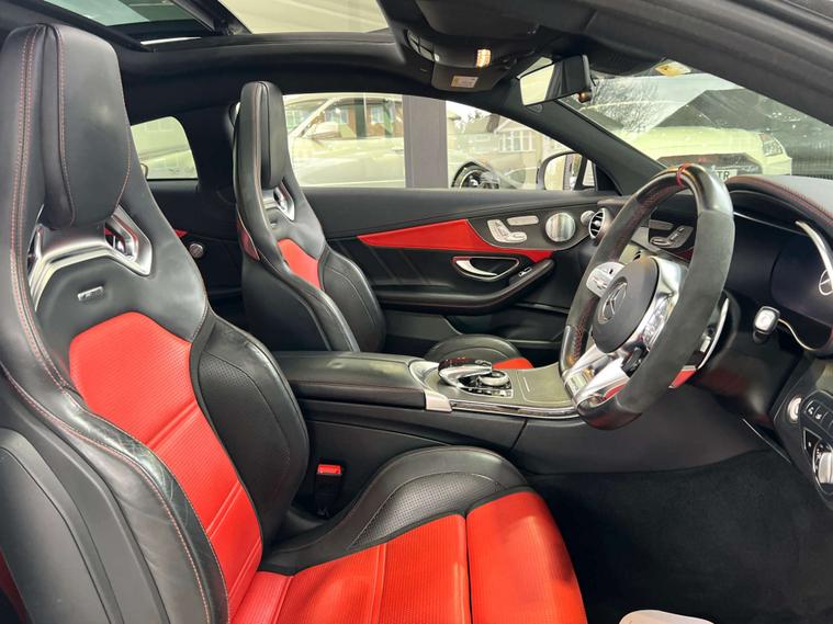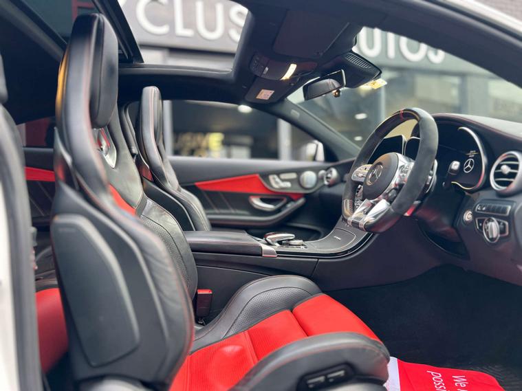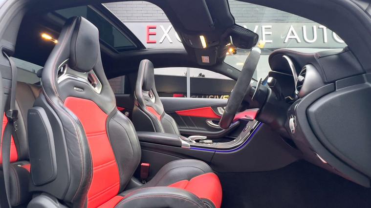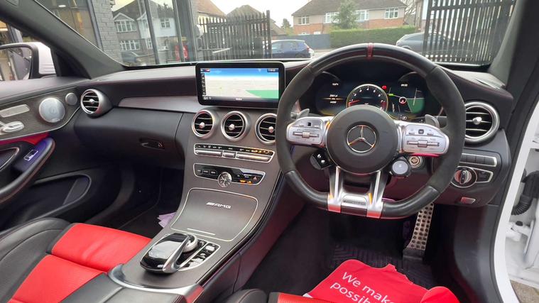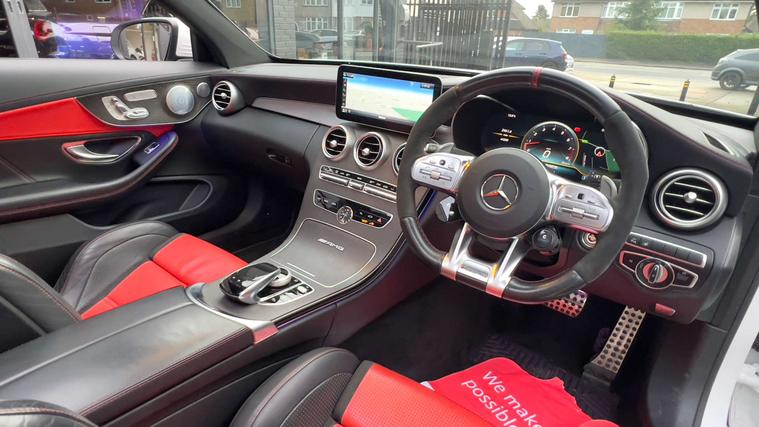 PANORAMIC GLASS SUNROOF + CARBON FIBRE BODYKIT + TWO TONE BLACK & RED LEATHER + AMG PERFORMANCE BUCKET SEATS + SWITCHABLE AMG SPORTS EXHAUST + 20" UPGRADE ALLOYS + LOWERED + BURMEISTER SOUND SYSTEM + MERCEDES CLOCK + 360 CAMERAS + AMG SPORTS SUSPENSION + APPLE PLAY + DIGITAL DASH COCKPIT + SAT NAV + BLUETOOTH + BLUETOOTH AUDIO + DAB RADIO + LED LIGHTS + BLACKOUT EXTERIOR STYLING + HEATED ELECTRIC SEATS + AUTO/ F1 PADDLES ON STEERING WHEEL