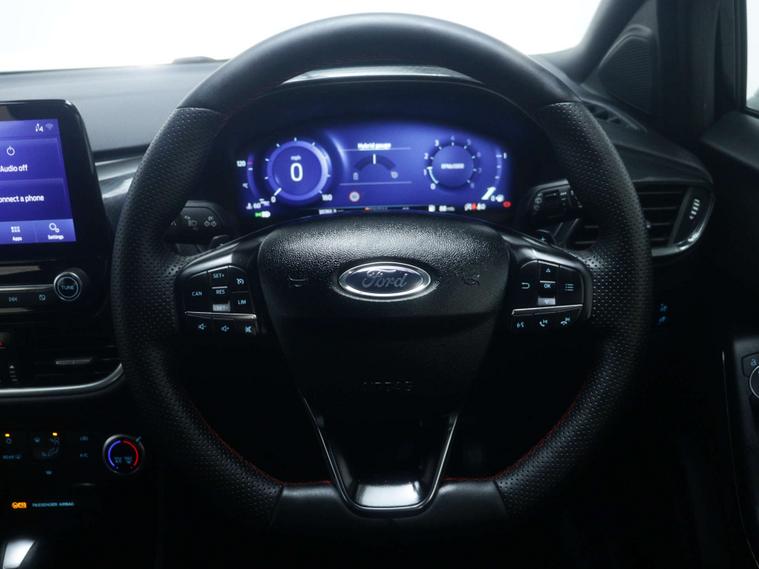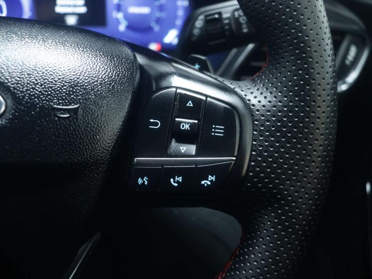 features Include –FORD SYNC 3 NAVIGATION, CRUISE CONTROL WITH INTELLIGENT SPEED ASSIST, REAR PARKING SENSORS, PRE-COLLISION ASSIST WITH AUTONOMOUS EMERGENCY BRAKING AND PEDESTRIAN-CYCLIST DETECTION, ELECTRIC WINDOWS - FRONT AND REAR, POWER-FOLDABLE HEATED DOOR MIRRORS WITH PUDDLE LAMPS, PROJECTOR HEADLAMPS WITH LED DAYTIME RUNNING LIGHTS, ST-LINE FLAT-BOTTOMED LEATHER STEERING WHEEL WITH UNIQUE RED STITCHING, MANUAL AIR CONDITIONING, 17IN ALLOY WHEELS - 5X2 SPOKE - BLACK MACHINED FINISH