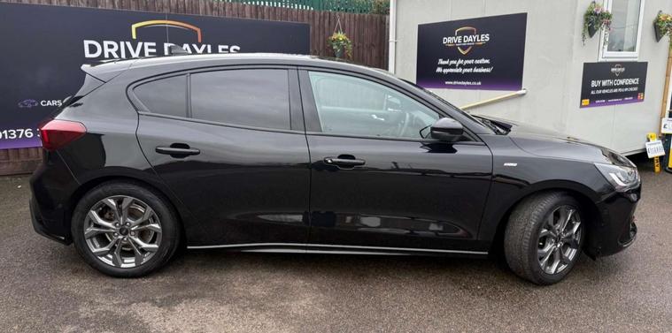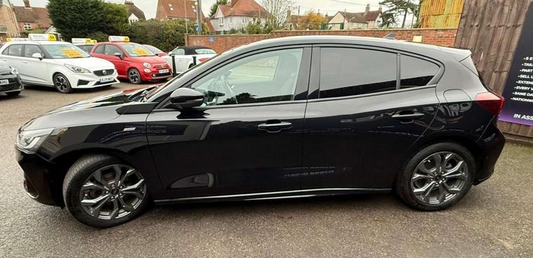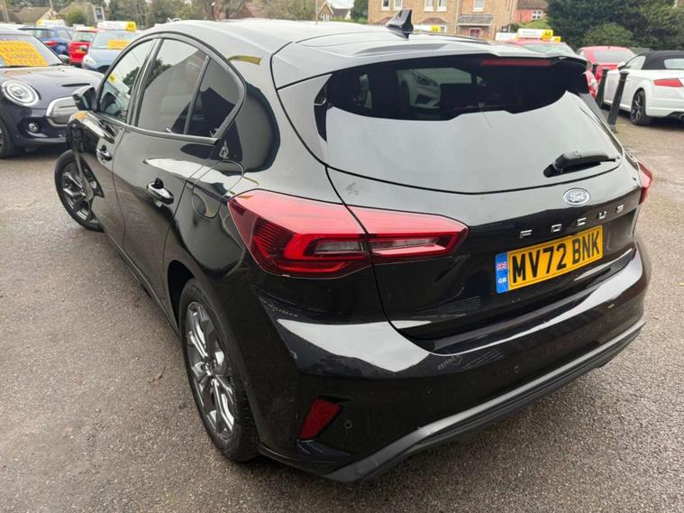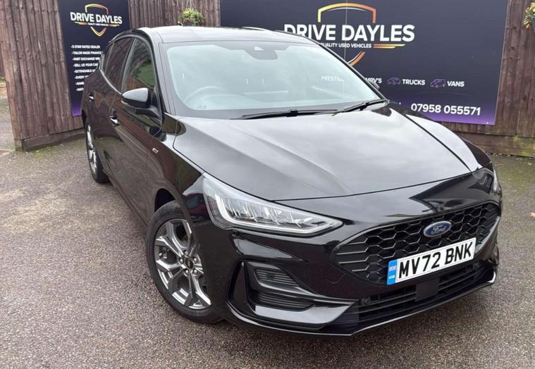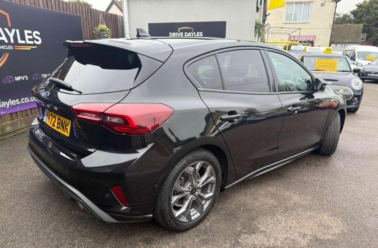 Finished in a striking black, the Ford Focus exudes an air of elegance and modernity, making it a head-turner on any road. Its dynamic design is complemented by the sporty ST-Line styling, which includes distinctive body accents and eye-catching alloy wheels, ensuring you make a statement wherever you go.