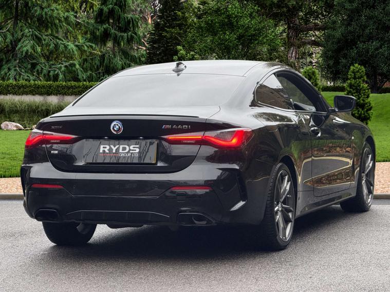Introducing the epitome of luxury and performance: the Bmw 4 Series 3.0 M440i xDrive MHEV Auto 4WD 2dr. This stunning vehicle, finished in sleek Black Sapphire, is designed to turn heads and deliver an unparalleled driving experience.